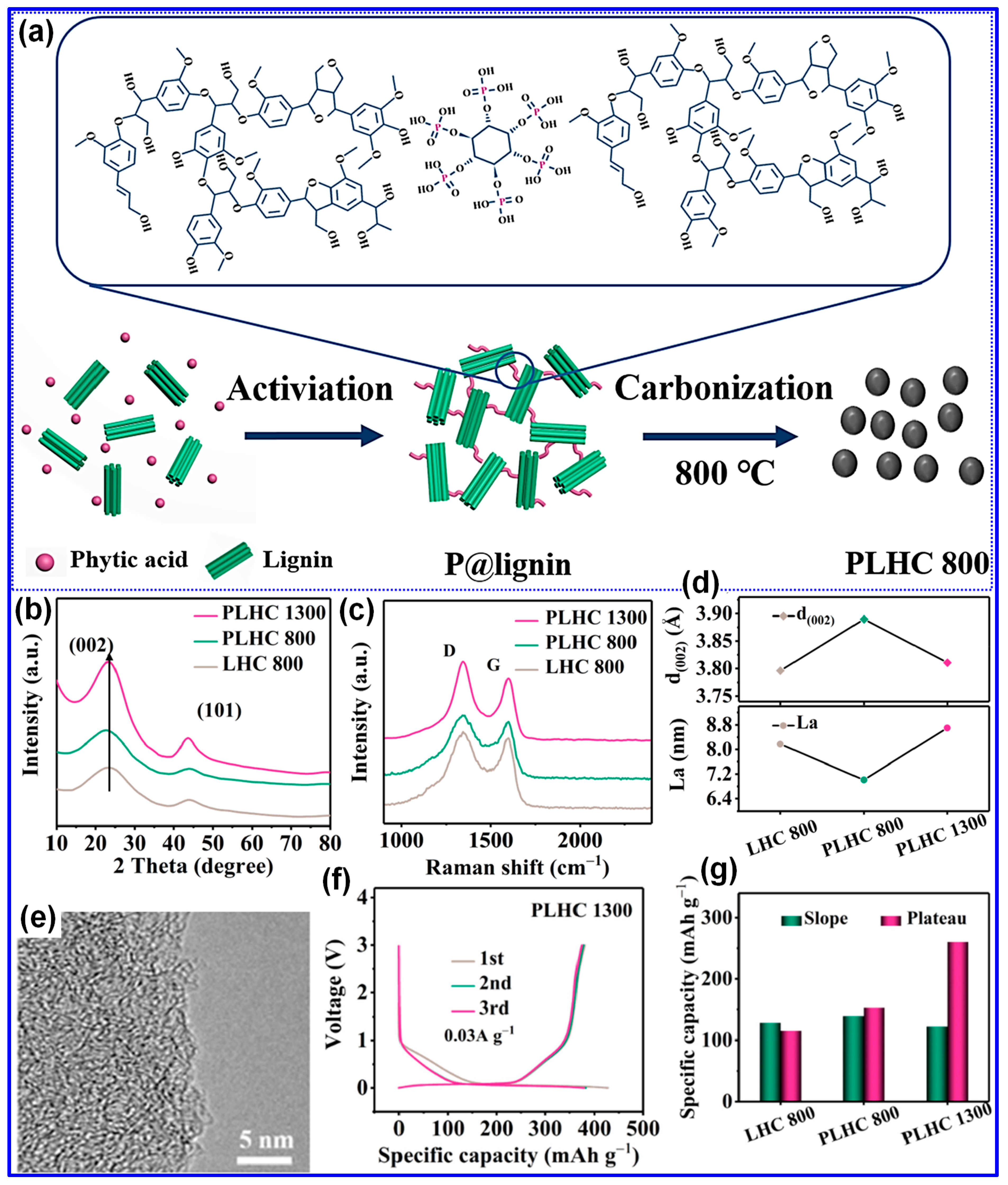 - Long, S.Y.; Qin, Y.; Liu, J.L.; Xian, X.Q.; Zhou, L.Q.; Lv, W.D.; Tang, P.D.; Wang, Q.Y.; Du, Q.S. Study on the lignin-derived sp2-sp3 hybrid hard carbon materials and the feasibility for industrial production. Sci. Rep. 2024, 14, 5091. [Google Scholar] [CrossRef] [PubMed]