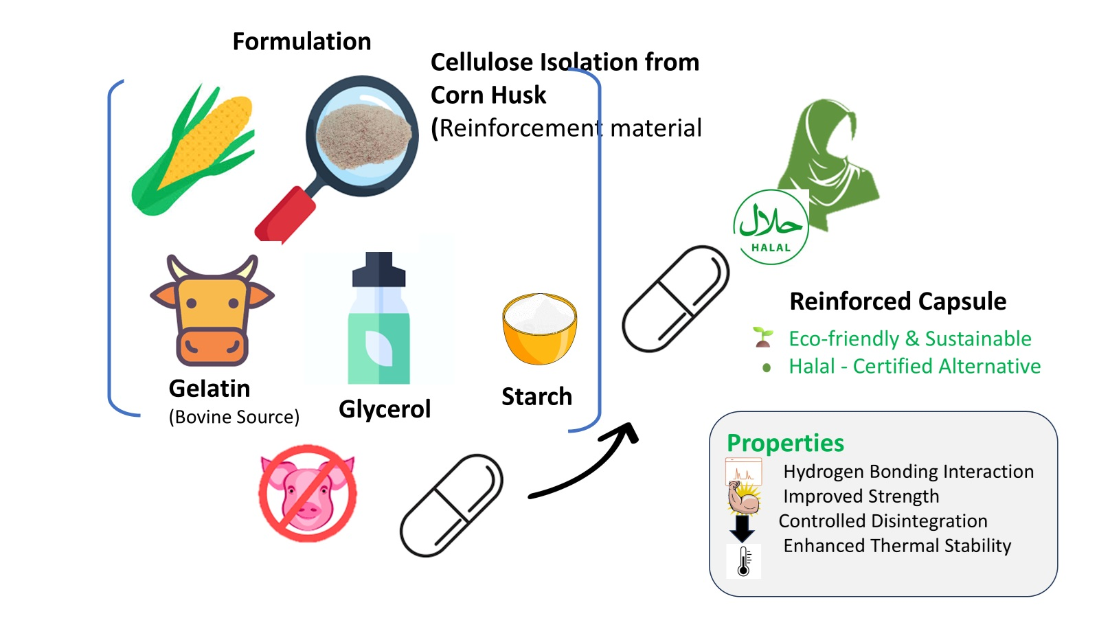 Structural and Functional Enhancement of Halal Gelatin Capsules Reinforced with Corn Husk Cellulose