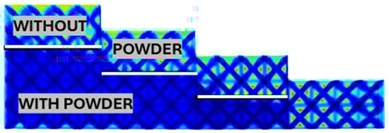 However, with a closed volume, there is a problem with removing non-solid powder and achieving the primary goal of printing with internal cavities, which is to make the part lighter [40]. It is therefore necessary to determine the geometric rules for penetrations through the outer envelope surface of parts and the design of internal reinforcement structures [41] so that the removal of excess powder is possible and the requirement for weight reduction is met [42].