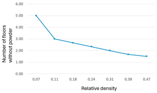 This result can be illustrated graphically (Figure 13), which shows a decrease in the dependency of the sandblasted layers on the relative density of the BCC lattice cell.