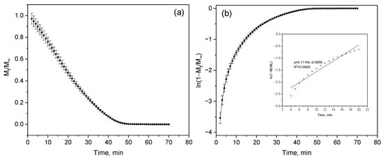 For sample (b), which exhibited the highest decomposition rate, the lower average activation energy (93.67 ± 0.45 kJ·mol−1) combined with a smaller pre-exponential factor ( = (1.45 ± 0.05) × 1013 s−1) suggests a more energetically accessible but less stable process, meaning that the material decomposes more readily upon heating.