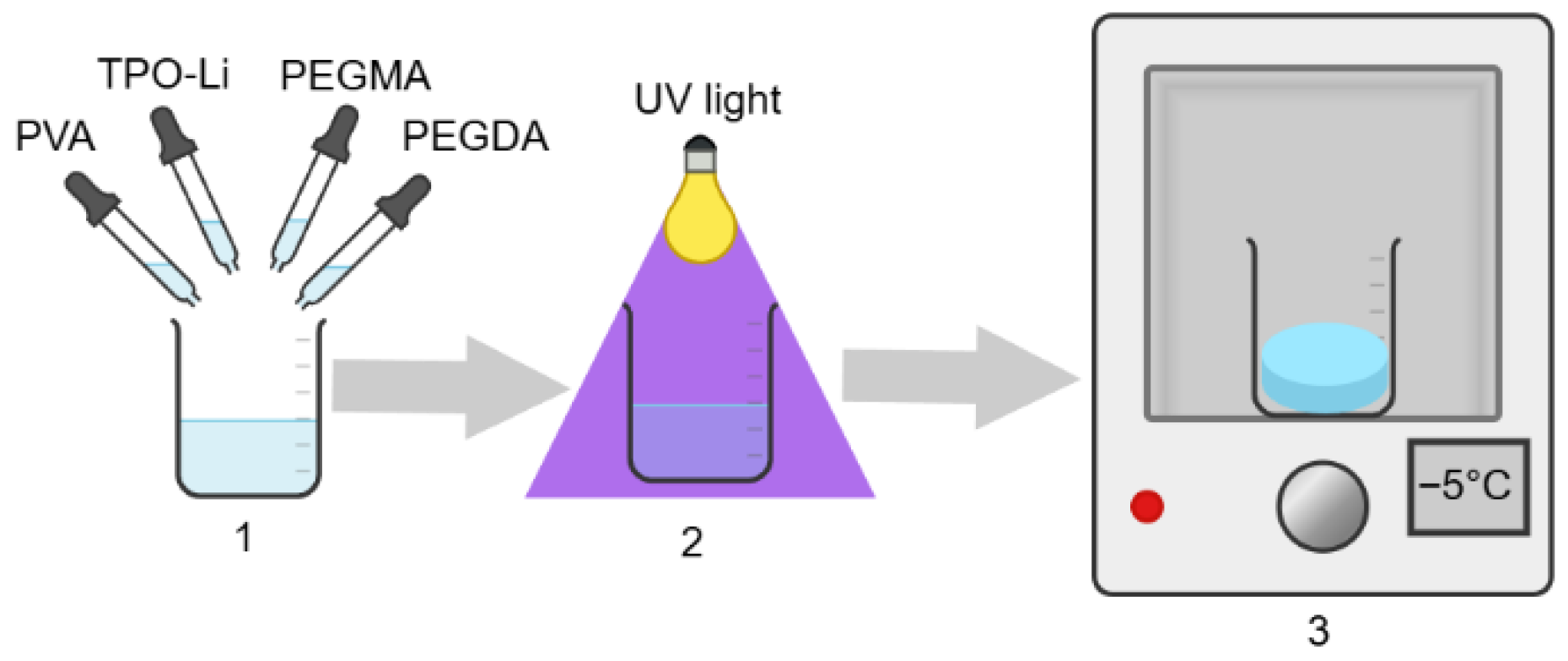 The results obtained in the present study expand and complement previously published data on the thermal stability of PVA- and PEG-based hydrogels [