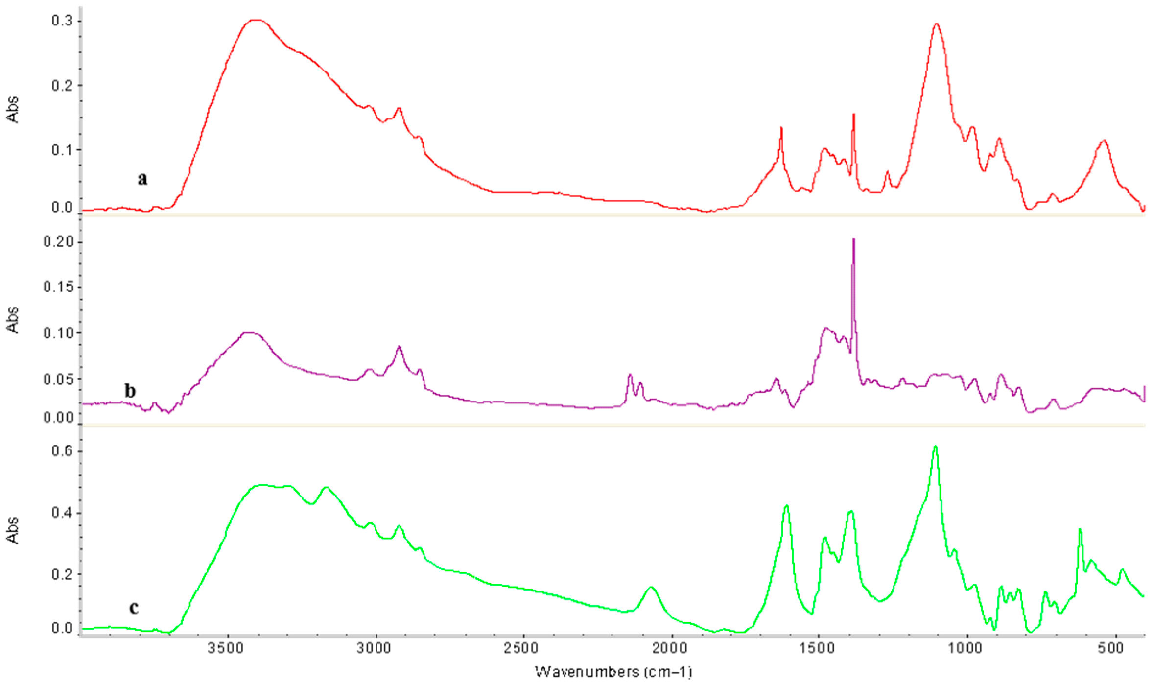 - Coates, J. Interpretation of Infrared Spectra, A Practical Approach. In Encyclopedia of Analytical Chemistry; Meyers, R.A., Ed.; John Wiley & Sons Co., Ltd.: Chichester, UK, 2000; pp. 10815–10837. [Google Scholar]