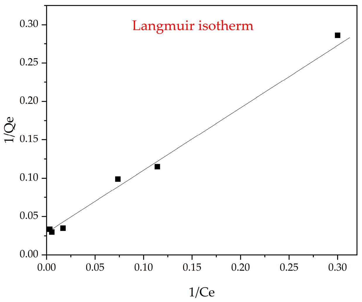 | Pseudo-second-order | 28.49 | k2 = 0.050 g mg−1 h−1 | 0.999 |