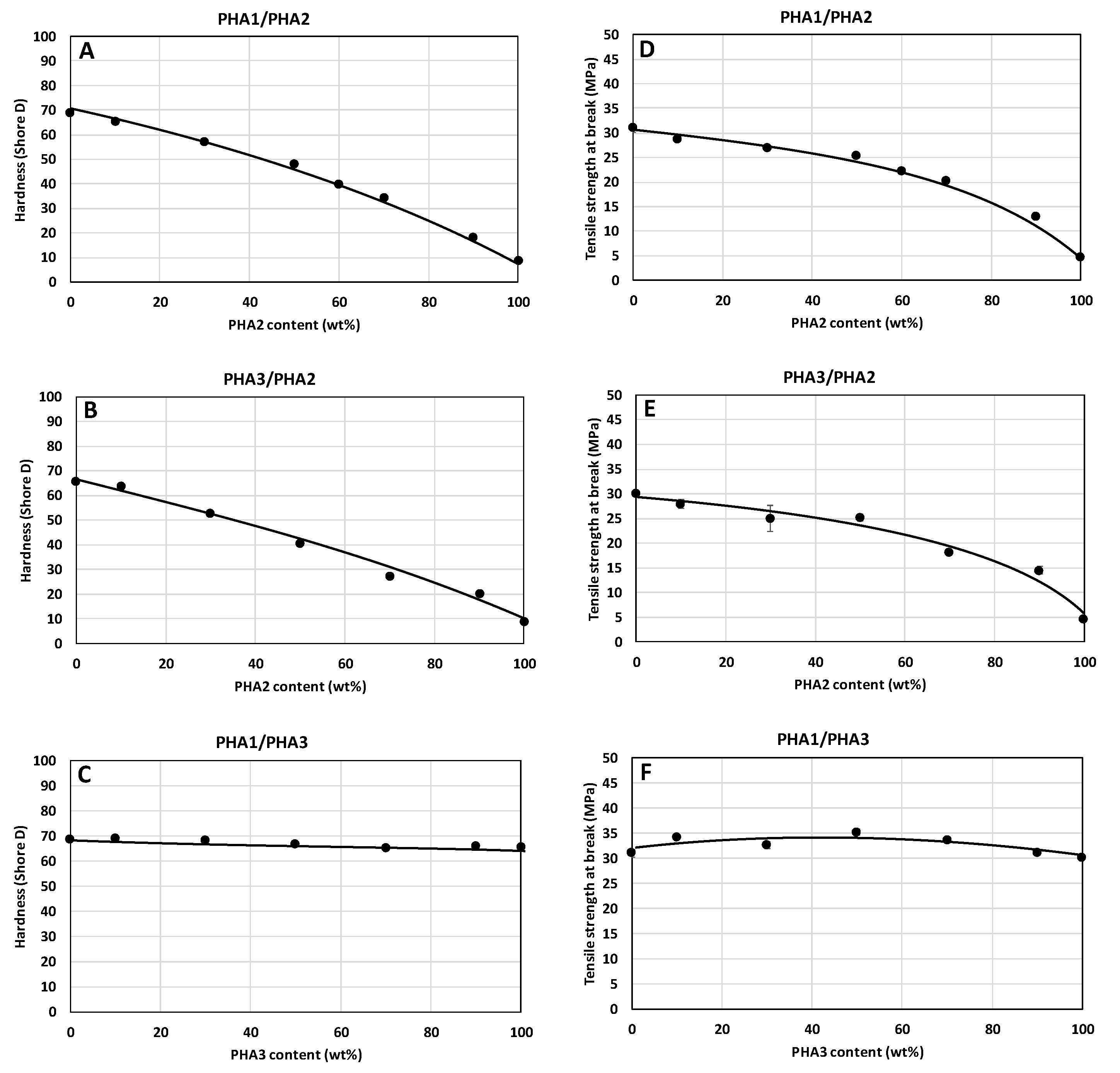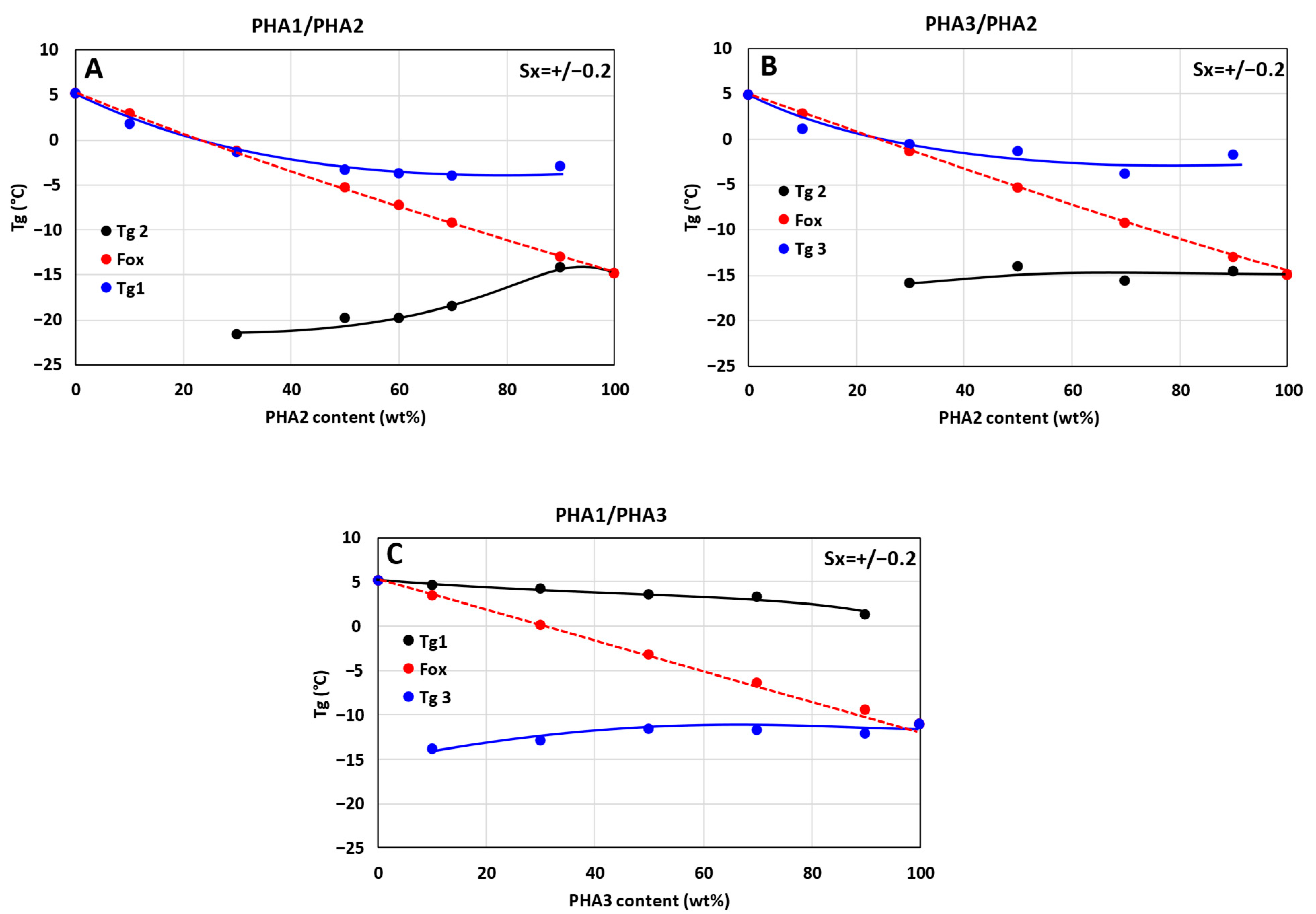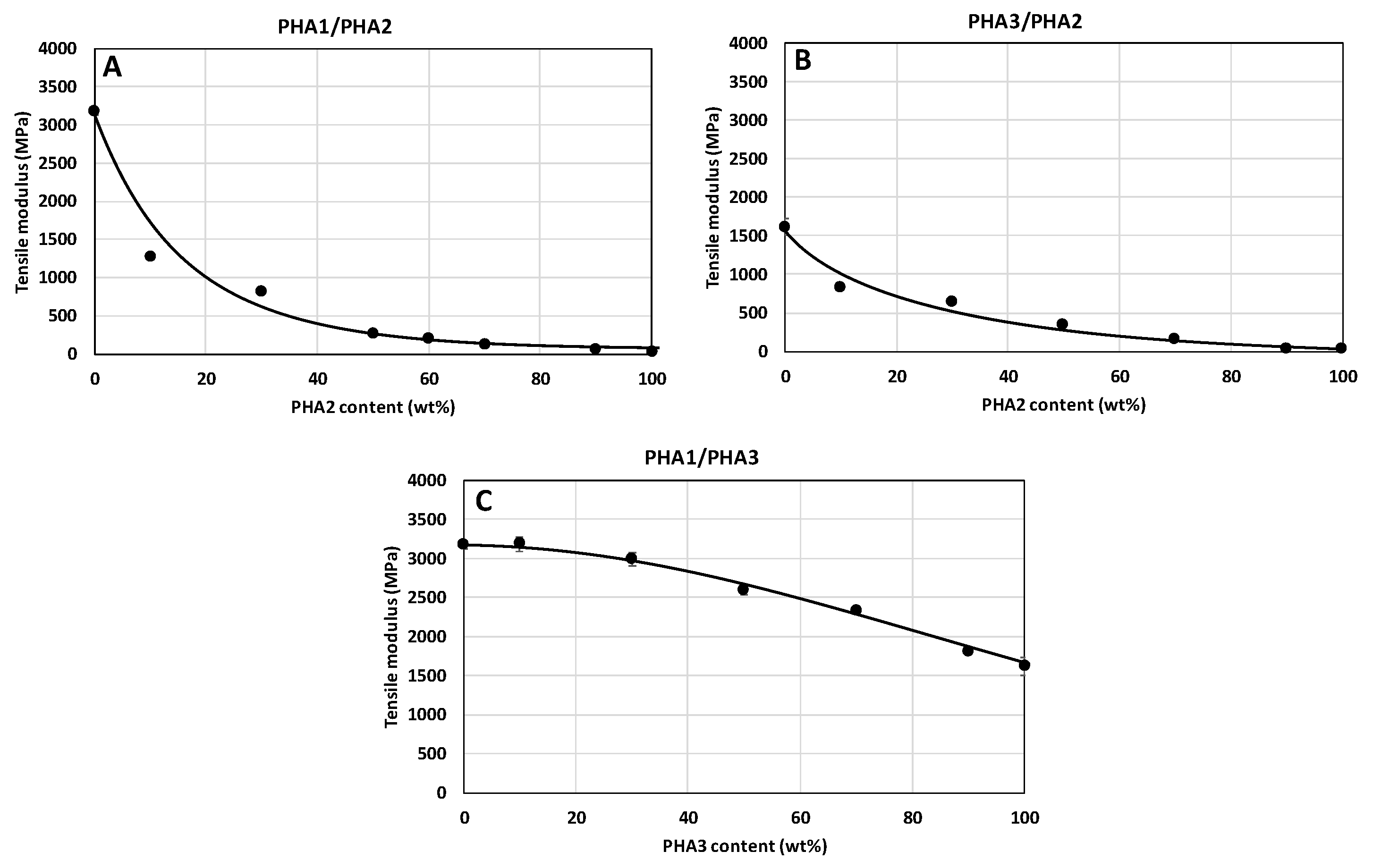 - El-Hadi, A.; Schnabel, R.; Straube, E.; Müller, G.; Henning, S. Correlation between degree of crystallinity, morphology, glass temperature, mechanical properties and biodegradation of poly (3-hydroxyalkanoate) PHAs and their blends. Polym. Test. 2002, 21, 665–674. [Google Scholar] [CrossRef]