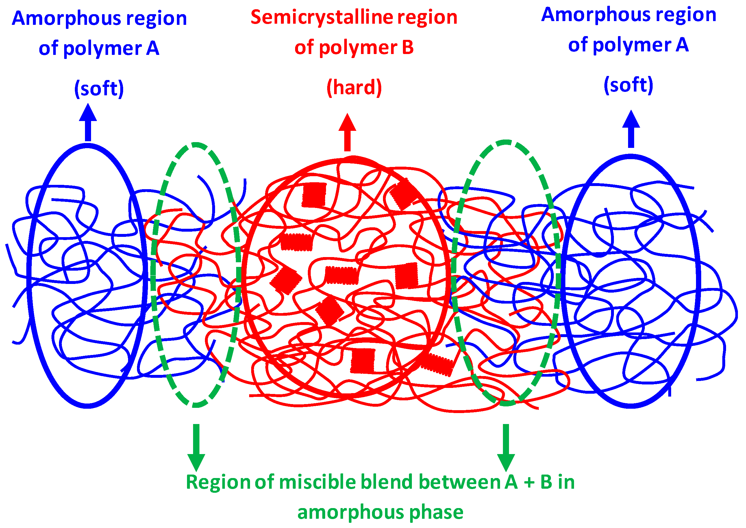 - The polymers must demonstrate partial miscibility in the amorphous phase.