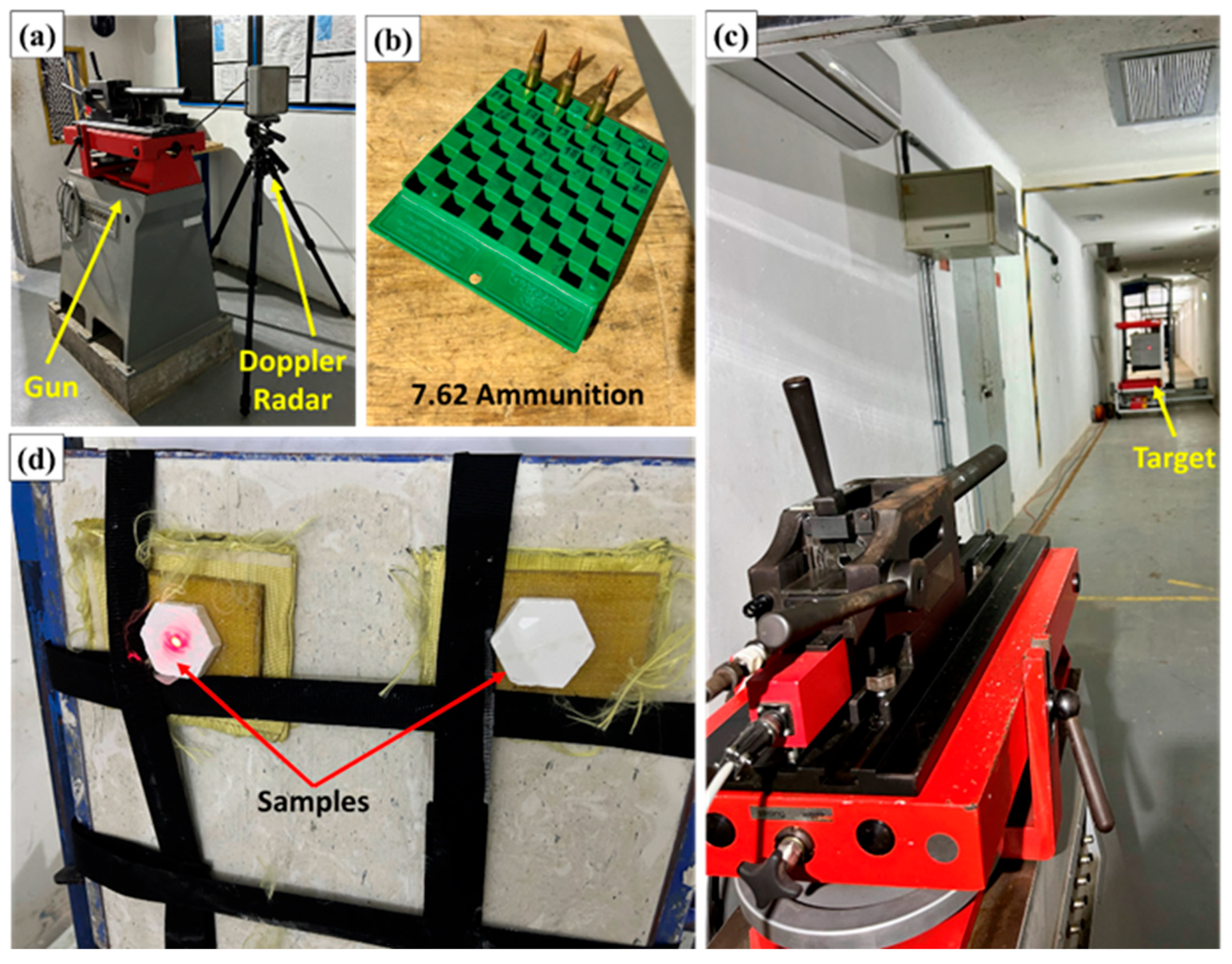 Figure 6 illustrates the ballistic impact test performed on the composites.