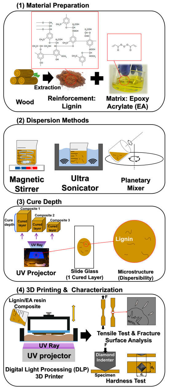 Chicago/Turabian StyleHa, Jeonghong, and Jong Wan Ko. 2025. "Bio-Adhesive Lignin-Reinforced Epoxy Acrylate (EA)-Based Composite as a DLP 3D Printing Material" Polymers 17, no. 21: 2833. https://doi.org/10.3390/polym17212833