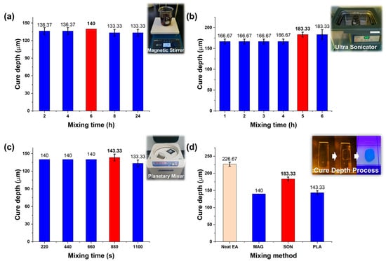 - Wieckowski, H.S.; Erb, R.M. Tuning depth of cure in resins with photoabsorbing fillers for vat photopolymerization. MRS Commun. 2025, 15, 308–319. [Google Scholar] [CrossRef]