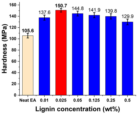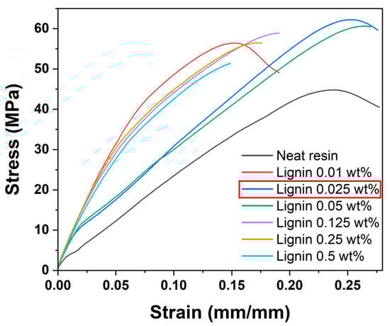 | Lignin Concentration [%] | Young’s Modulus [MPa] | Tensile Strength [MPa] | Toughness [MJ/m3] |
