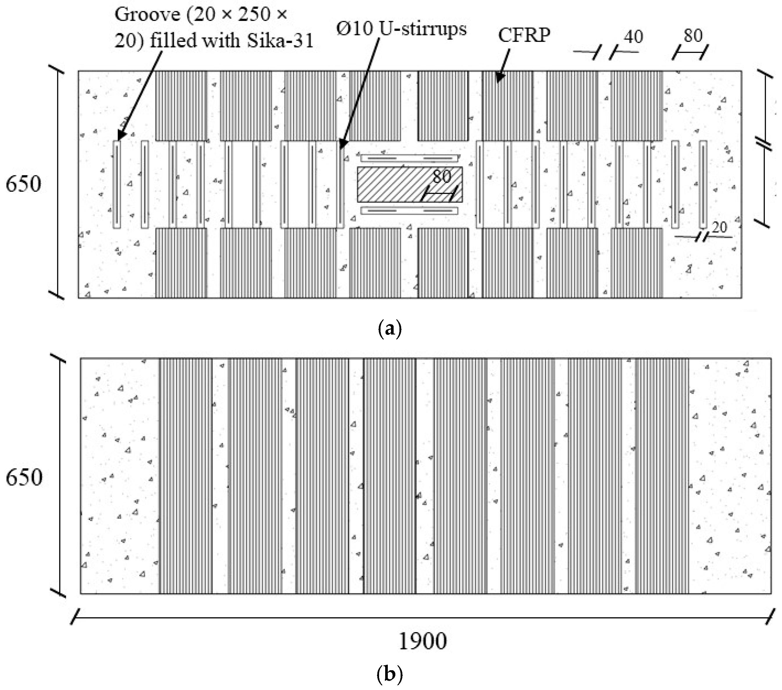 - Abass, A.L.; Hassan, Y.R. Shear Behavior of Reinforced Concrete Wide Beams Strengthened with CFRP Sheet without Stirrups. Diyala J. Eng. Sci. 2019, 12, 80–98. [Google Scholar] [CrossRef]