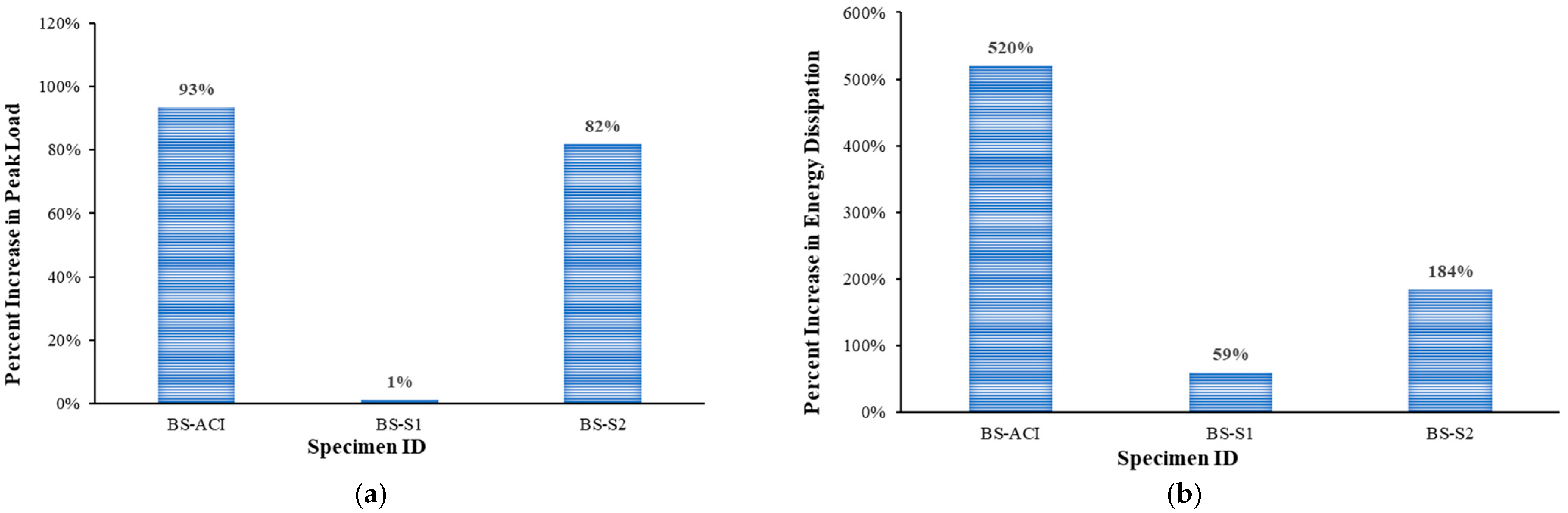 - The strengthening schemes applied to specimens BS-S1 and BS-S2 led to increases in dissipated energy of approximately 59% and 184%, respectively, in comparison with the control specimen (BS-CON).
