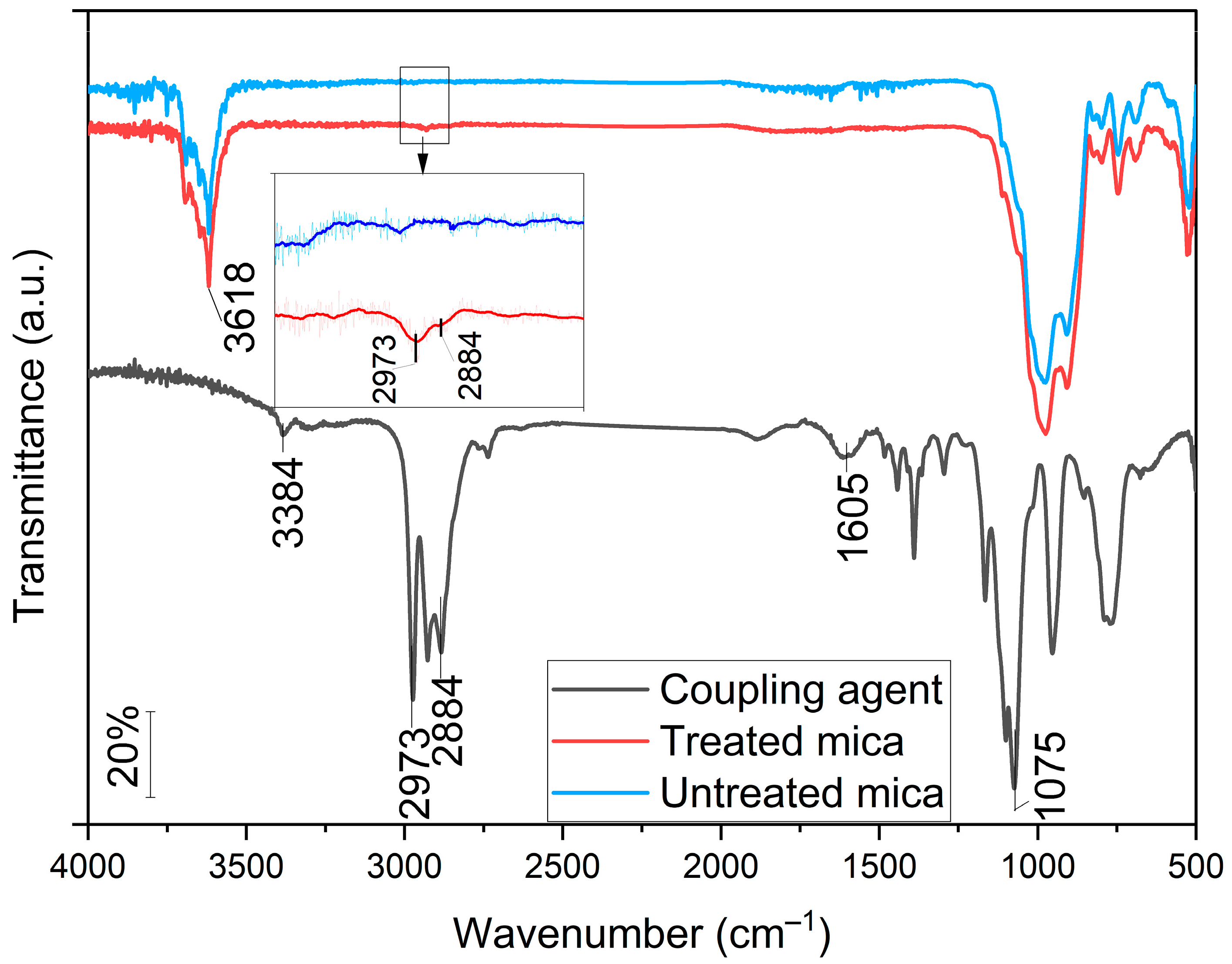 - Chen, X.; Zhang, T.; Sun, P.; Yu, F.; Li, B.; Dun, L. Study on the Performance and Mechanism of Modified Mica for Improving Polypropylene Composites. Int. J. Low-Carbon Technol. 2022, 17, 176–184. [Google Scholar] [CrossRef]