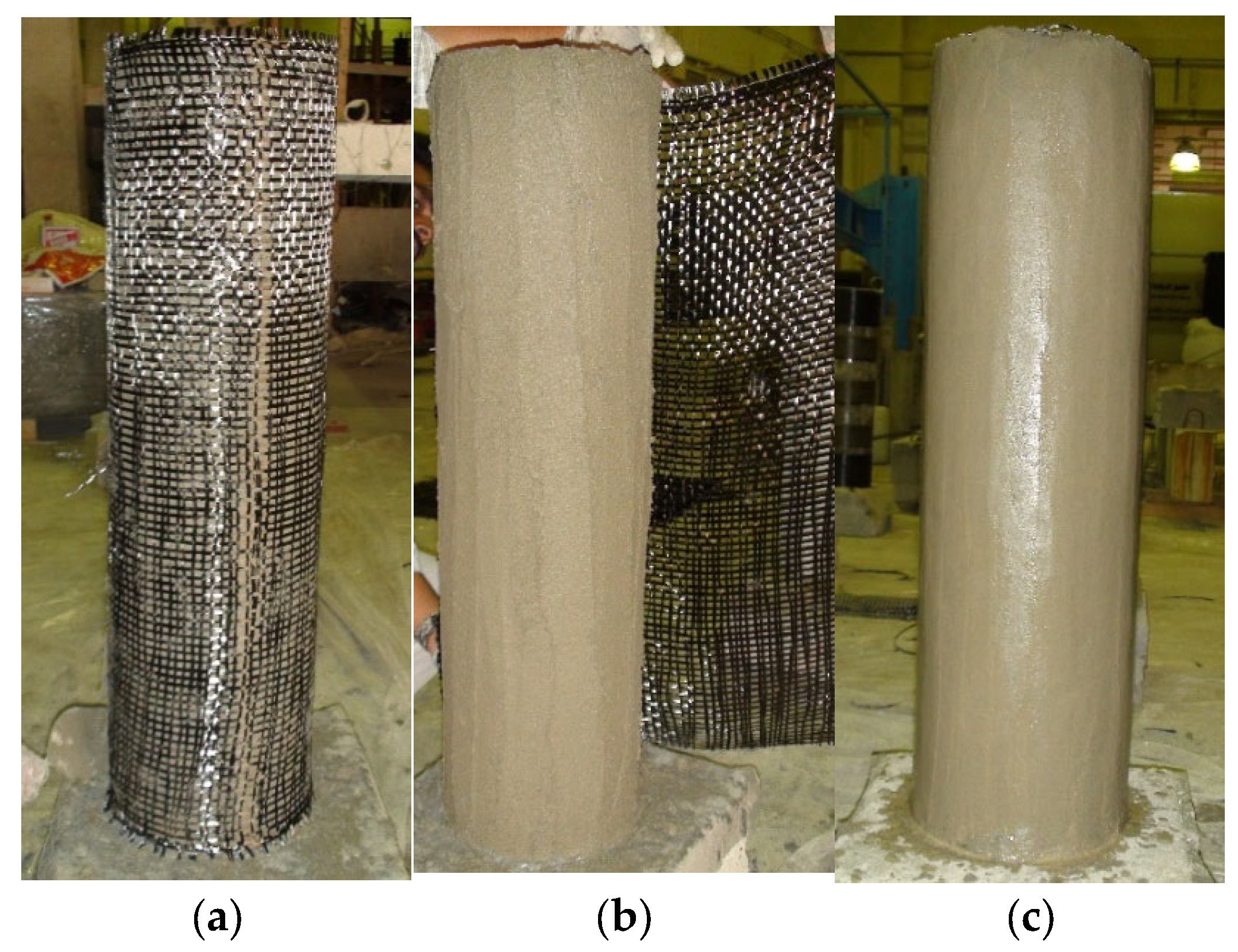 - Bournas, D.A.; Lontou, P.V.; Papanicolaou, C.G.; Triantafillou, T.C. Textile-reinforced mortar versus fiber-reinforced polymer confinement in reinforced concrete columns. ACI Struct. J. 2007, 104, 740–748. [Google Scholar]