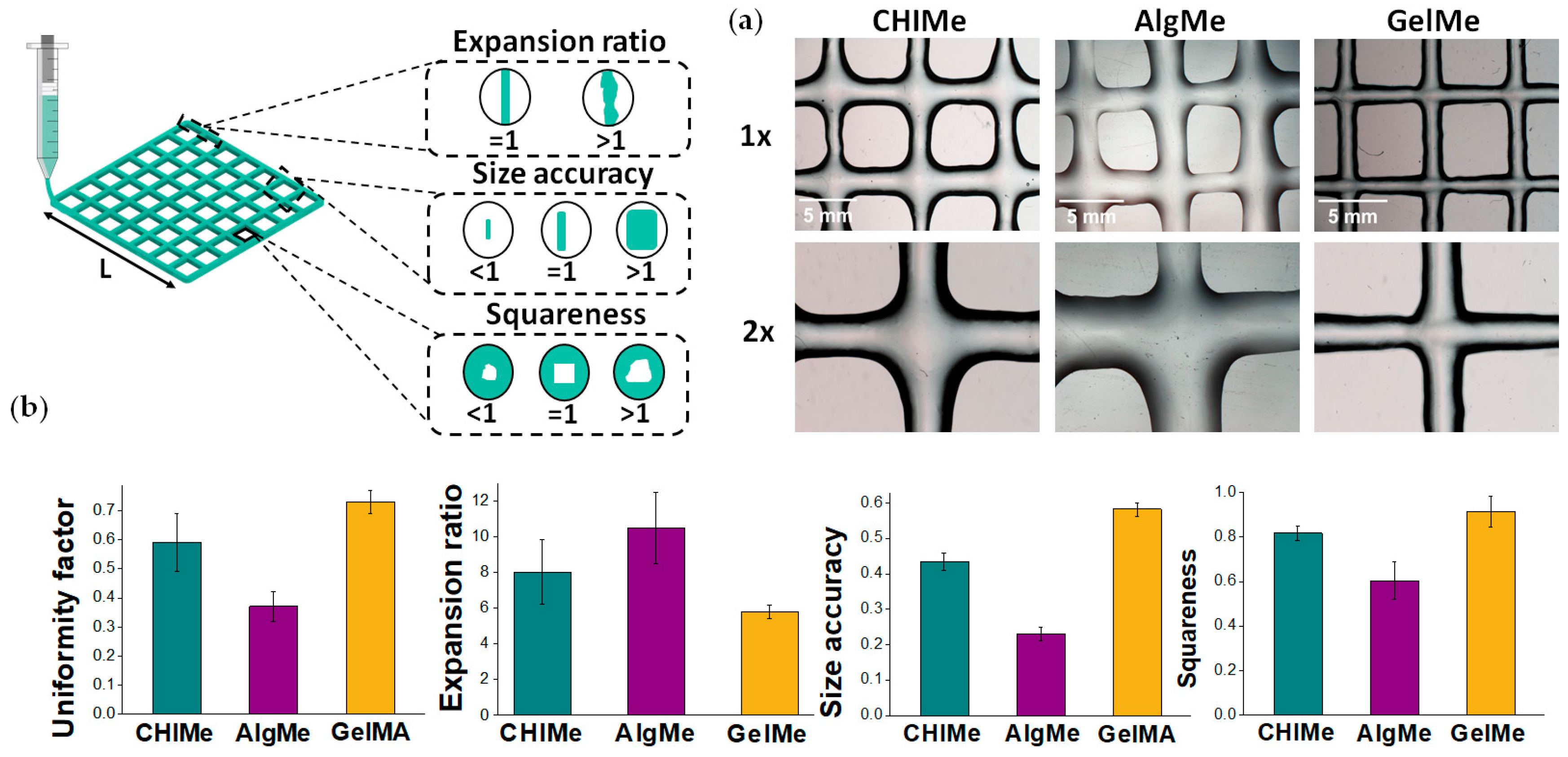 APA StyleGarcía-García, A., Silván, U., Pérez-Álvarez, L., & Lanceros, S. (2025). Comparing the Printability, Biological and Physicochemical Properties of Bio-Based Photo-Crosslinkable Hydrogels. Polymers, 17(21), 2867. https://doi.org/10.3390/polym17212867