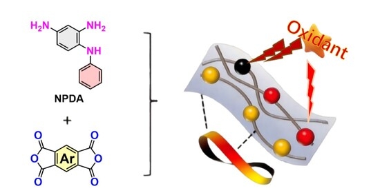 - Liu, T.-Q.; Zheng, F.; Ding, T.-M.; Zhang, S.-Y.; Lu, Q. Design and synthesis of a novel quinoxaline diamine and its polyimides with high-Tg and red color. Polymer 2019, 179, 121612. [Google Scholar] [CrossRef]