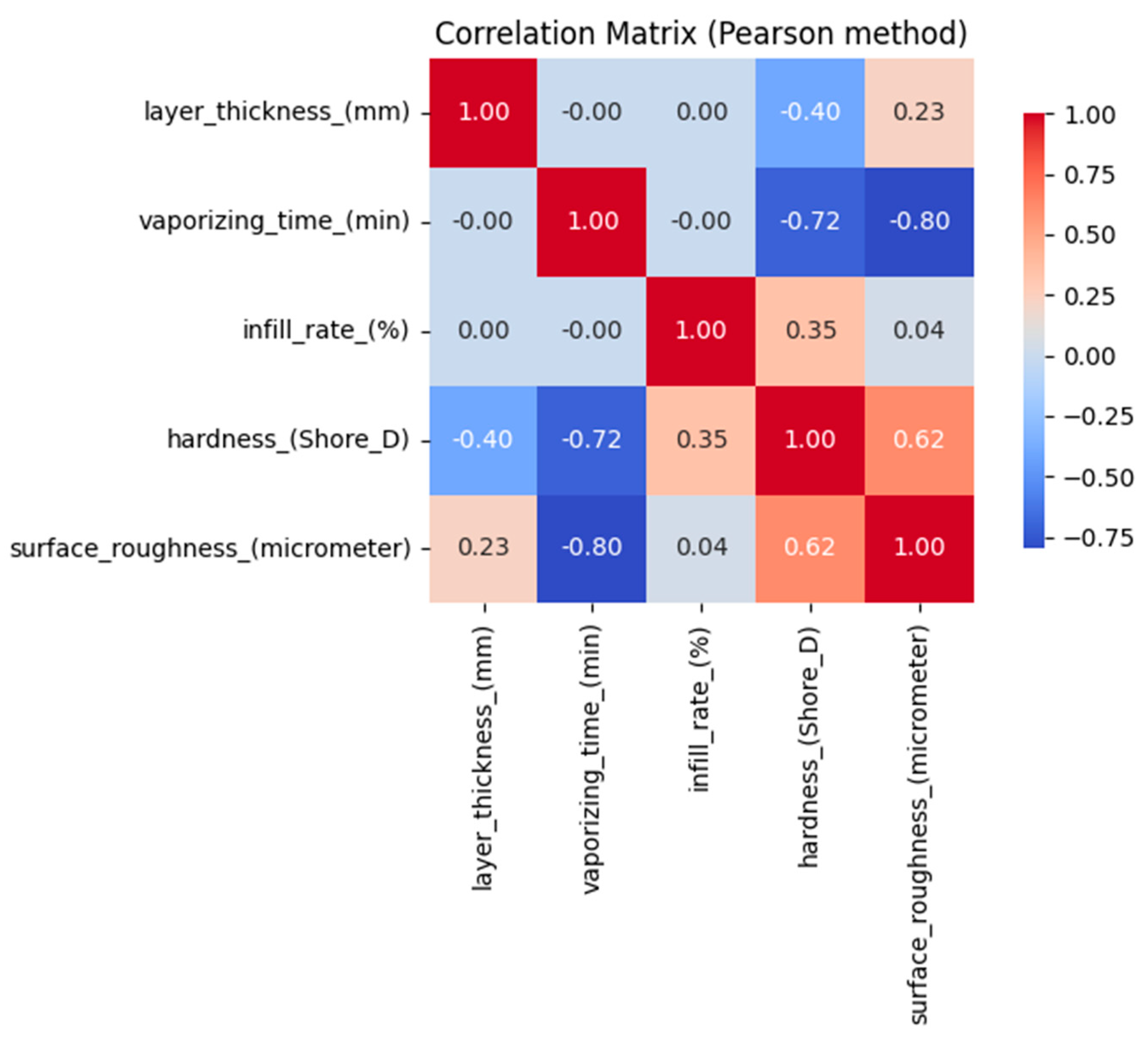 | Özkül et al. (2025) [60] | FDM–ABS | Hardness, Tensile Strength, Flexural Strength, Surface Roughness | KSTAR (hardness and roughness), MLP (tensile and flexural) | Hardness: MAE = 0.006 ≈ 0.99 Surface Roughness: MAE = 0.009 ≈ 0.99 Tensile and Flexural Strength: ≈ 0.99 |