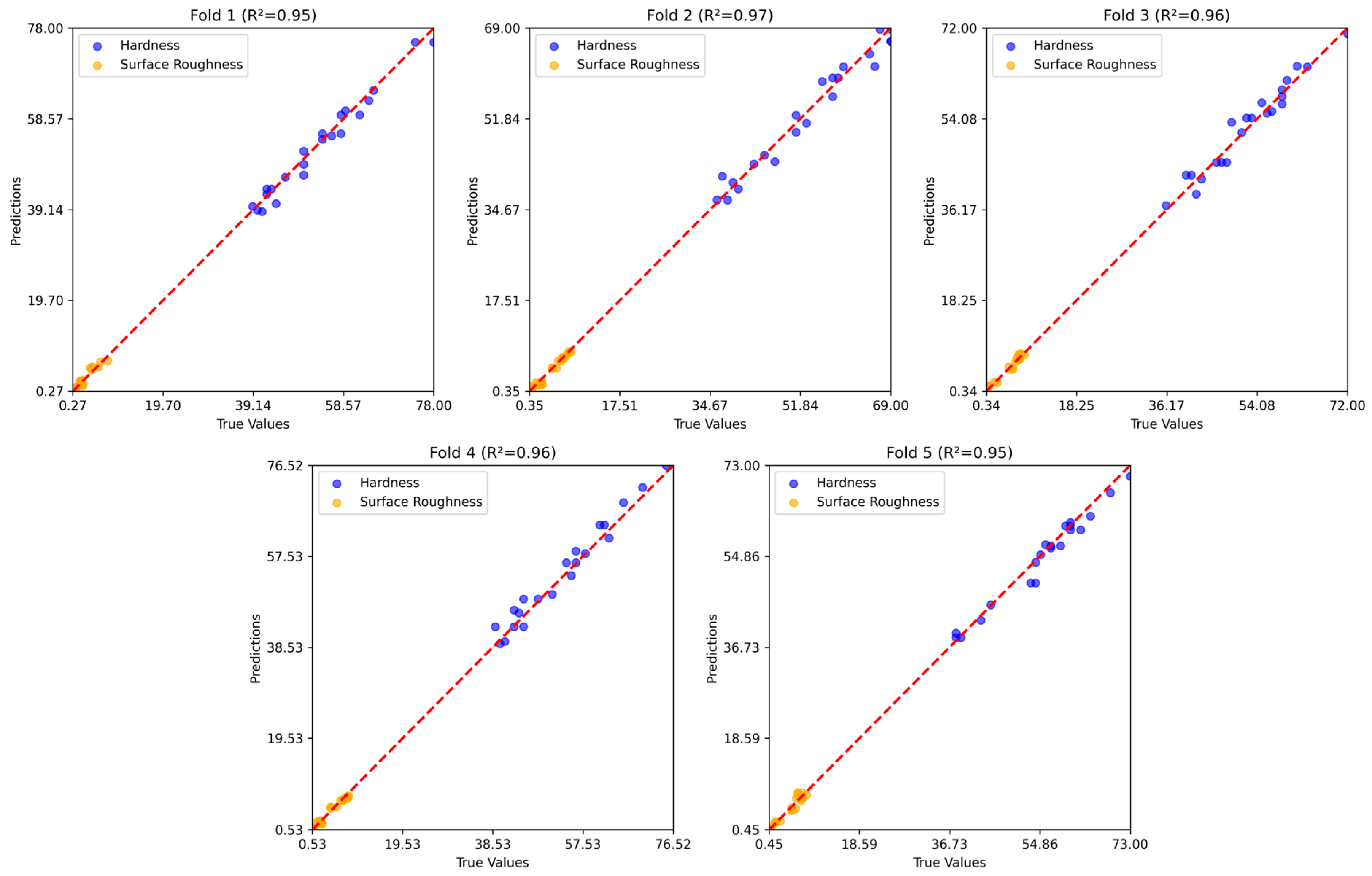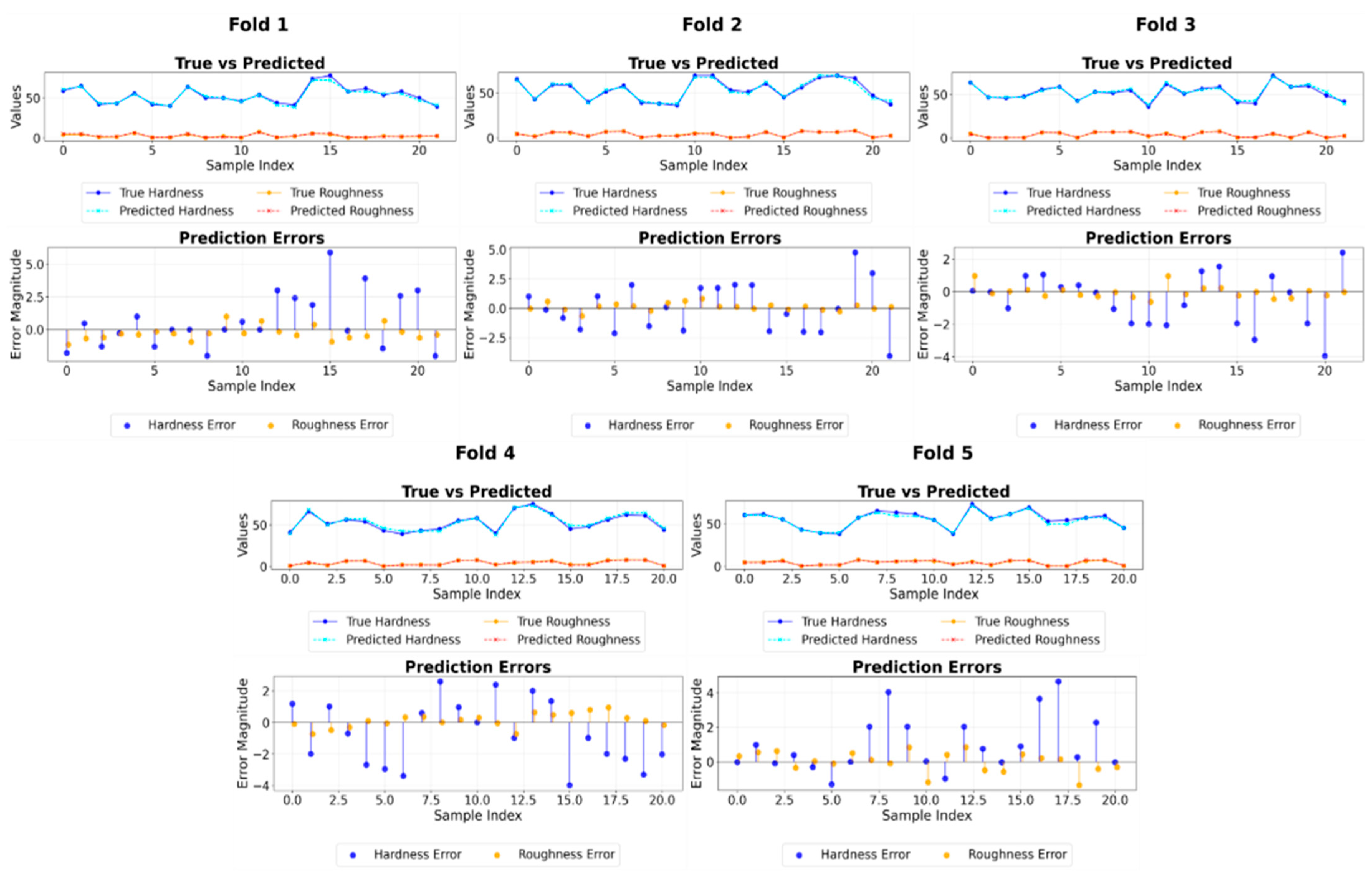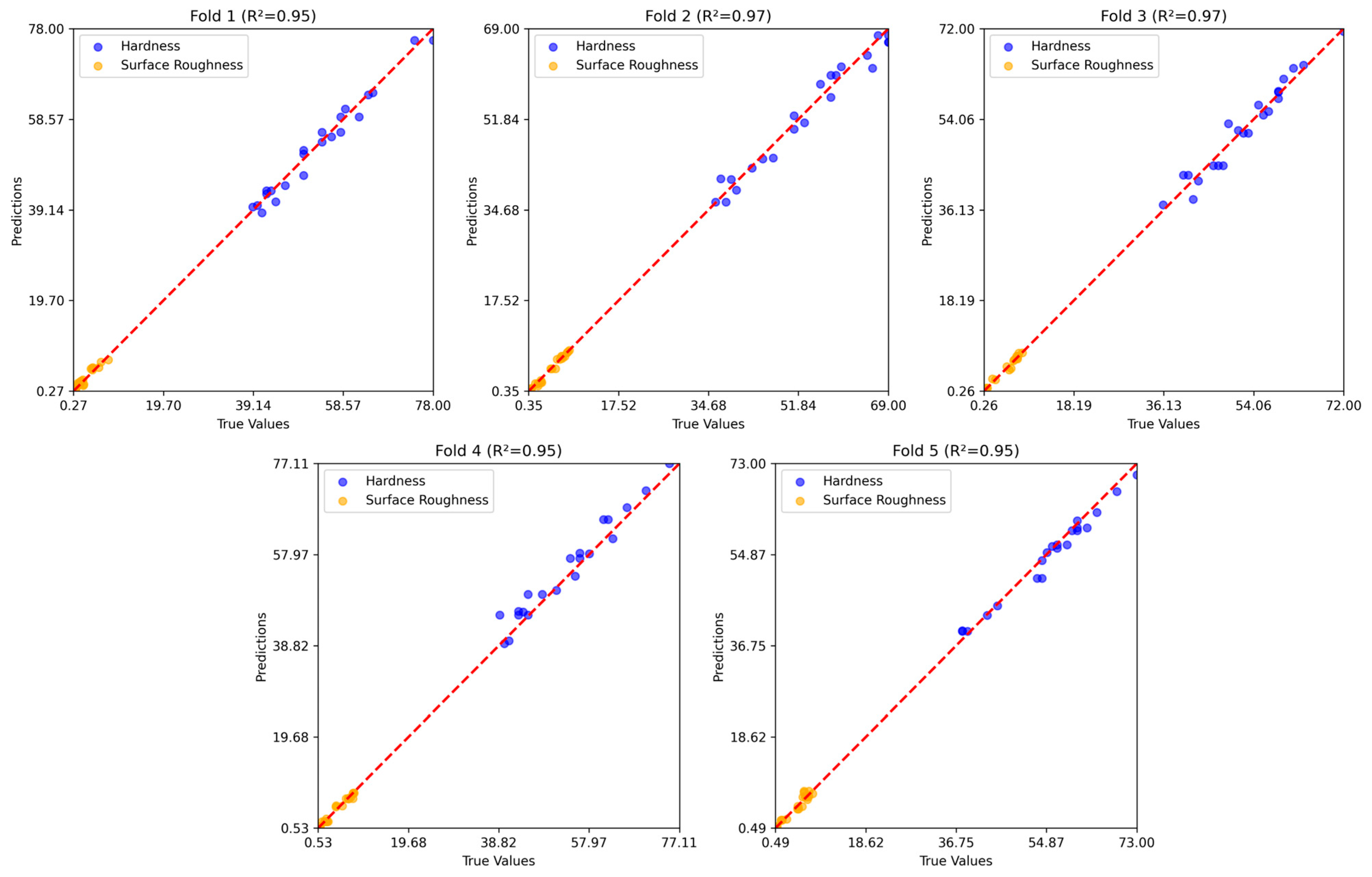 - The model demonstrated strong generalization capability, maintaining high predictive accuracy across all folds. This indicates robustness for industrial applications, where process variability is common.