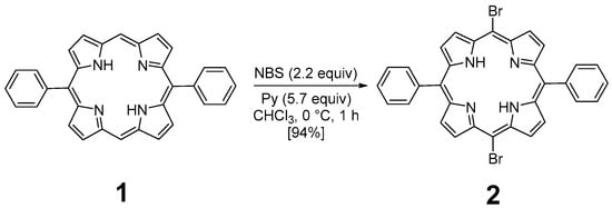 Dibromation of 5,15-diphenylporphyrin 1.