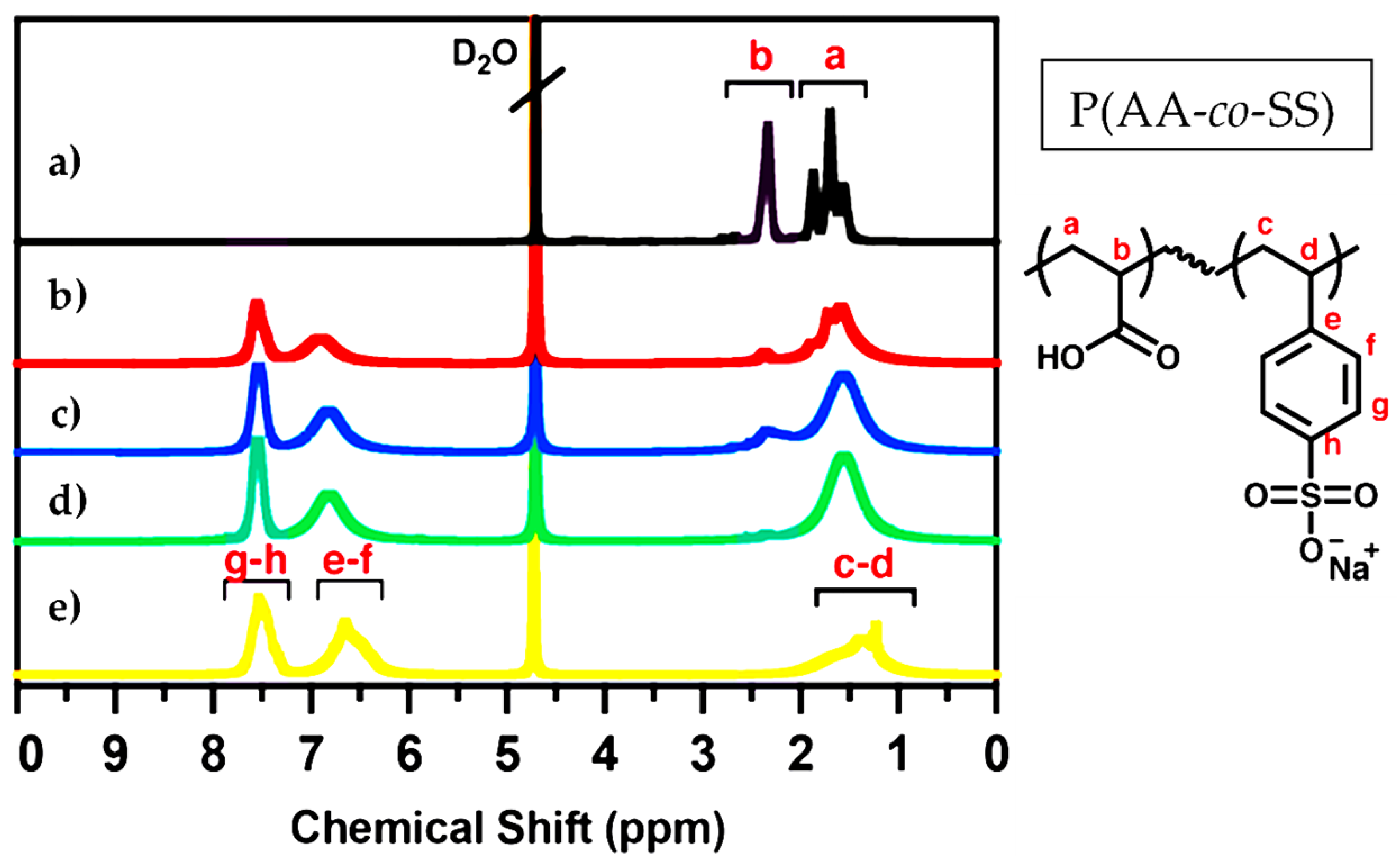 - M’Bareck, C.O.; Nguyen, Q.T.; Metayer, M.; Saiter, J.M.; Garda, M.R. Poly (acrylic acid) and poly (sodium styrenesulfonate) compatibility by Fourier transform infrared and differential scanning calorimetry. Polymer 2004, 45, 4181–4187. [Google Scholar] [CrossRef]