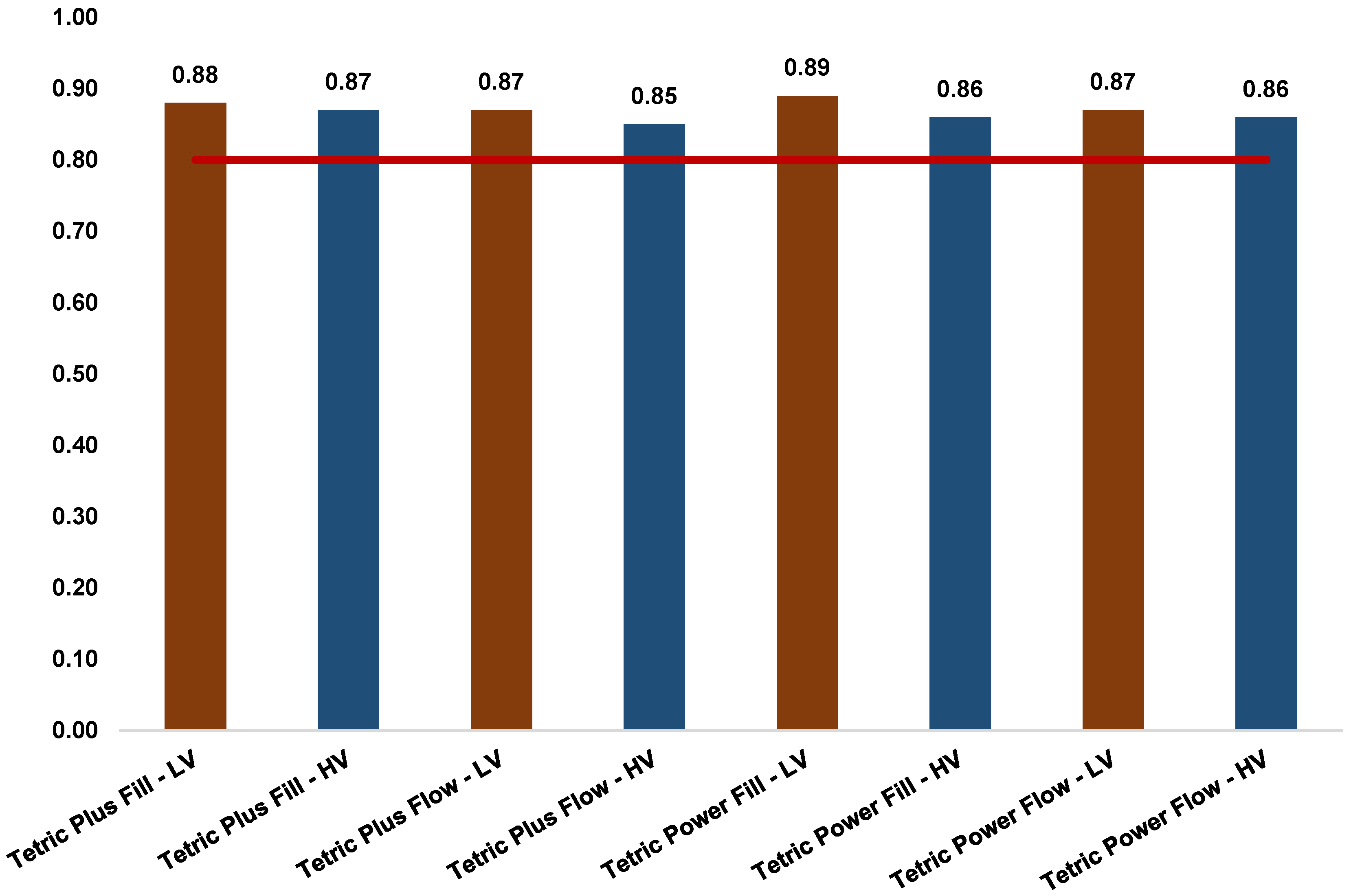 | Tetric Plus Flow | 54.35 | 4.39 | 48.36 | 60.58 |