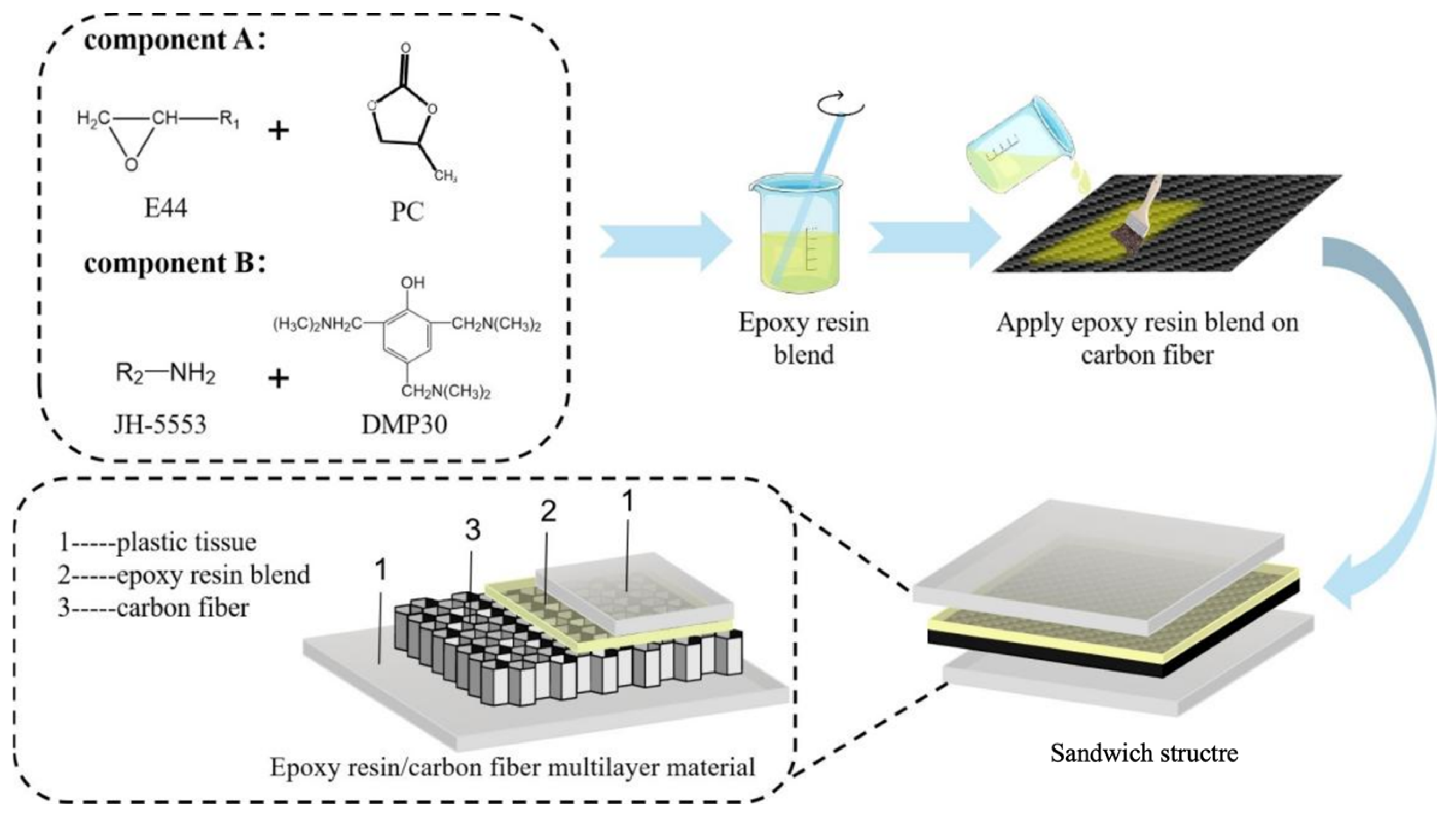 2.2. Preparation of Epoxy Resin/Carbon Fiber Multilayer Material