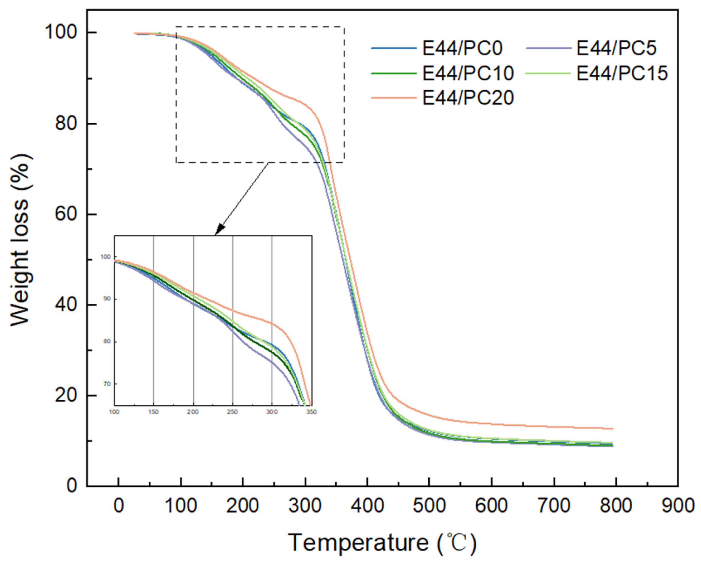 3.2. Thermogravimetric Properties