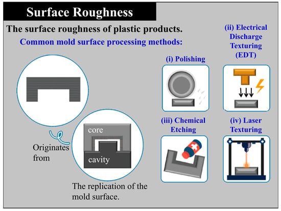 - Gim, J.; Turng, L.-S. A review of current advancements in high surface quality injection molding: Measurement, influencing factors, prediction, and control. Polym. Test. 2022, 115, 107718. [Google Scholar] [CrossRef]