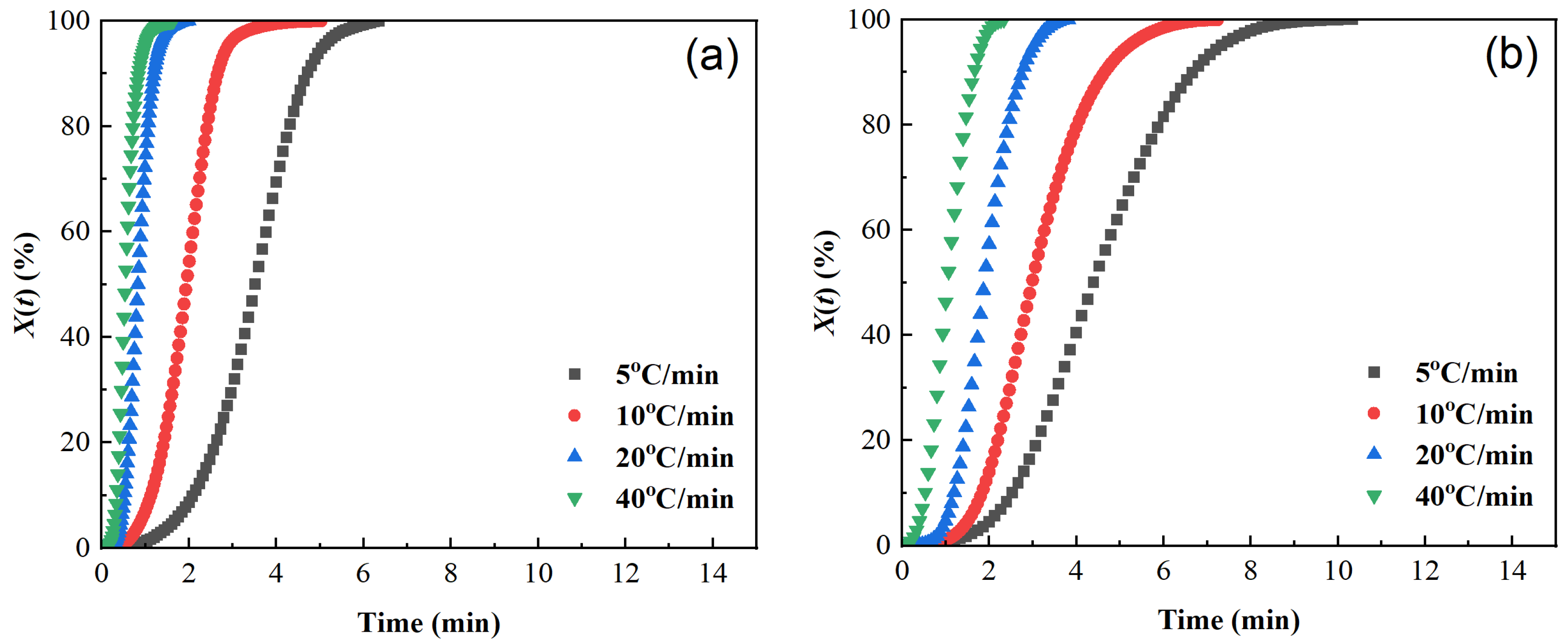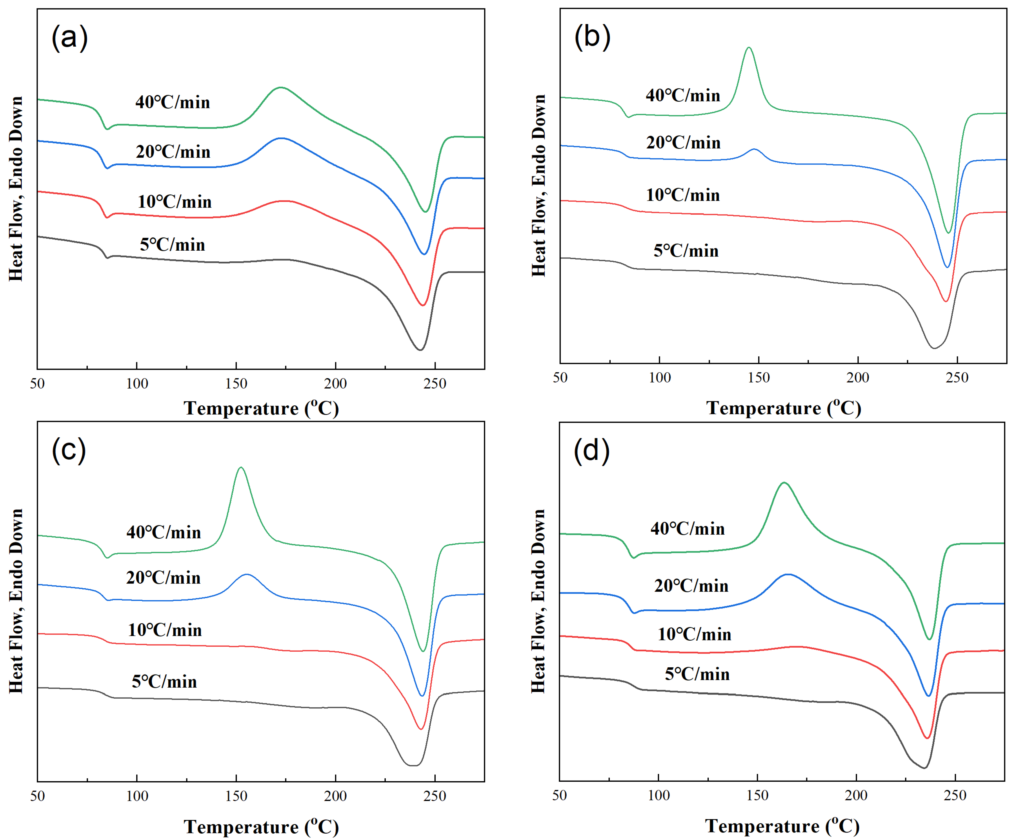 3.5. Analysis of Non-Isothermal Cold Crystallization Behavior