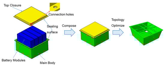 - Shui, L.; Chen, F.; Garg, A.; Peng, X.; Bao, N.; Zhang, J. Design optimization of battery pack enclosure for electric vehicle. Struct. Multidiscip. Optim. 2018, 58, 331–347. [Google Scholar] [CrossRef]