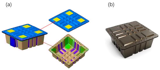 The proposed lightweight composite battery-pack enclosure: (a) 3D model; (b) manufactured product.