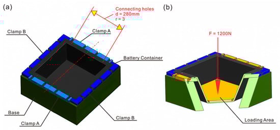 - Pan, Y.; Xiong, Y.; Dai, W.; Diao, K.; Wu, L.; Wang, J. Crush and crash analysis of an automotive battery-pack enclosure for lightweight design. Int. J. Crashworthiness 2022, 27, 500–509. [Google Scholar] [CrossRef]