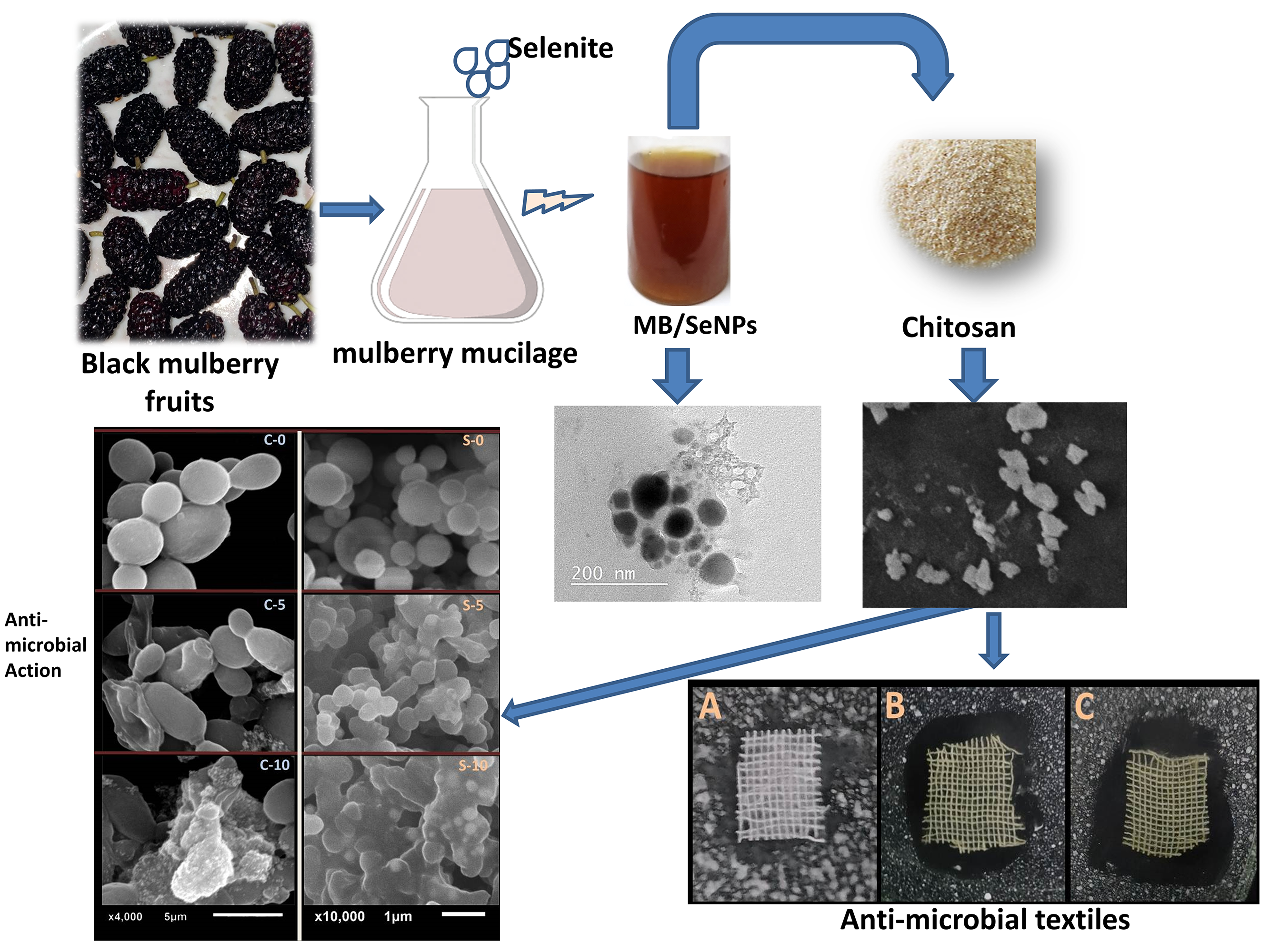 Alghuthaymi, M.A. Innovative Antimicrobial Fabrics Loaded with Nanocomposites from Chitosan and Black Mulberry Polysaccharide-Mediated Selenium Nanoparticles to Suppress Skin Pathogens. Polymers 2025, 17, 2902. https://doi.org/10.3390/polym17212902