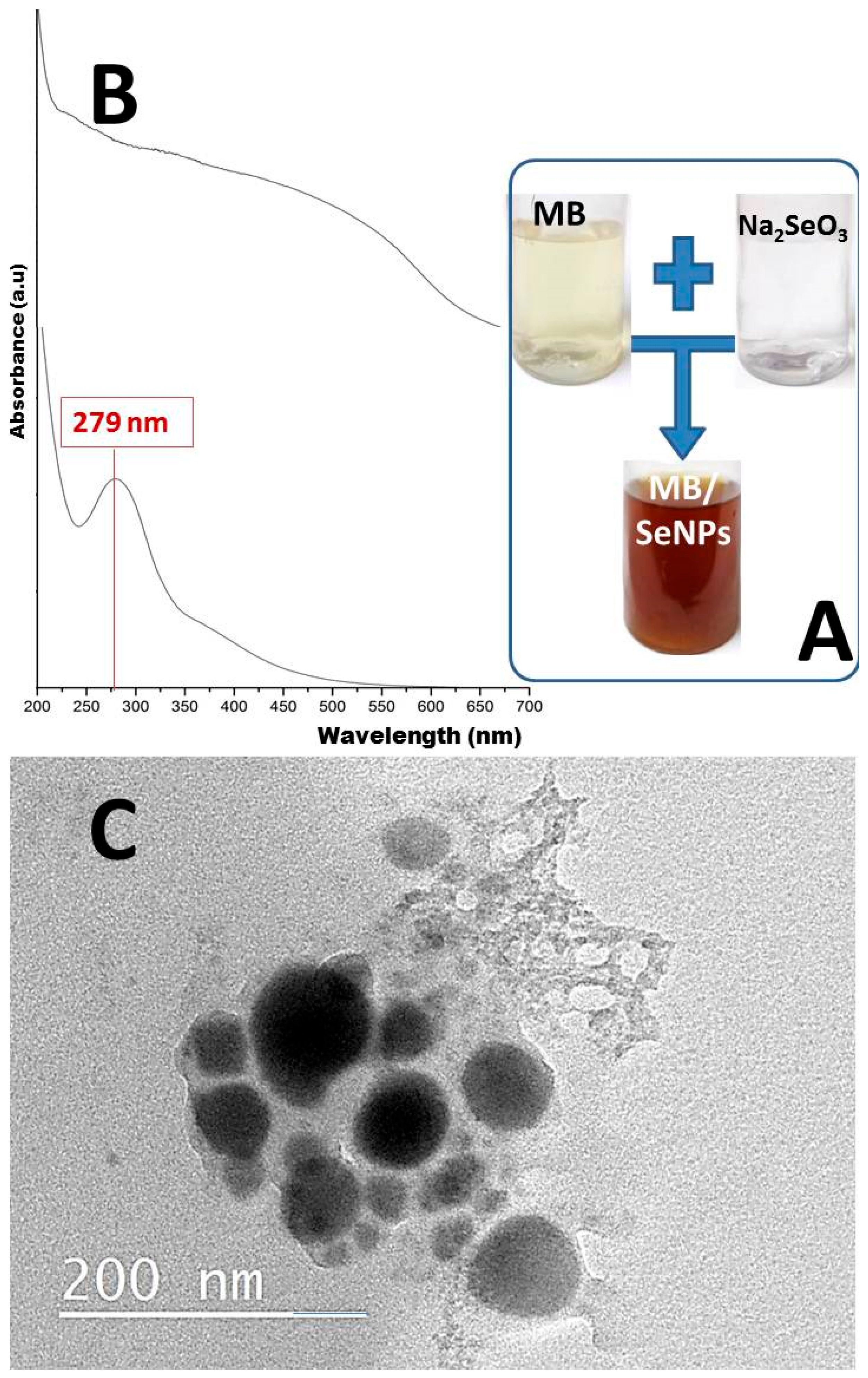 | MB-SeNPs | 18.5 ± 1.4 a | 32.5 | 19.1 ± 1.5 a | 35.0 |