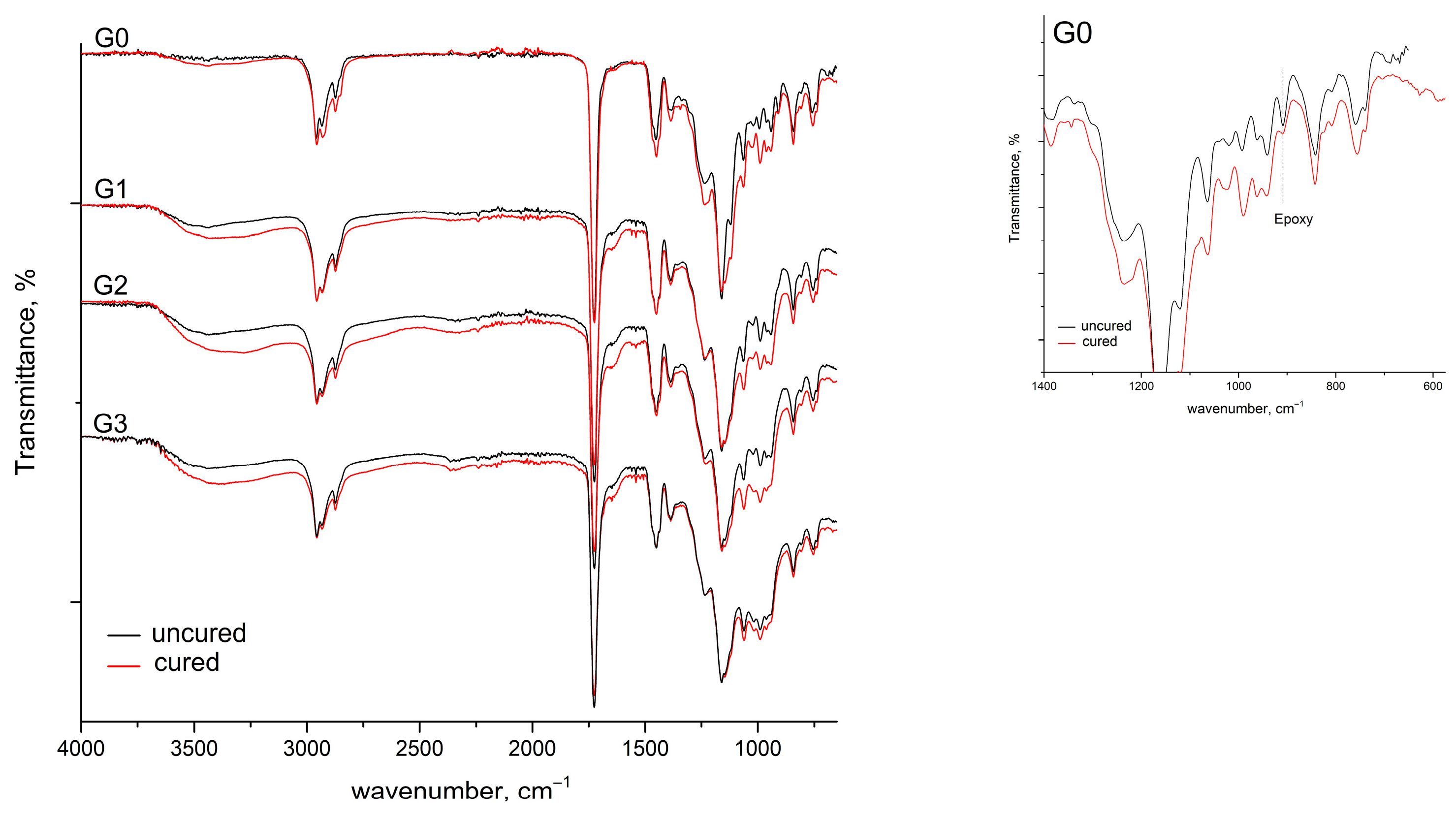 Figure 4 represents IR spectra G-series reactive copolymer-PA blends before and after curing process. For the unmodified binder (G0), the FTIR spectrum exhibits a distinct absorption band at 908 cm