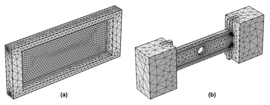 Mesh for cavity insert in the evaluation model (a) and application model (b).