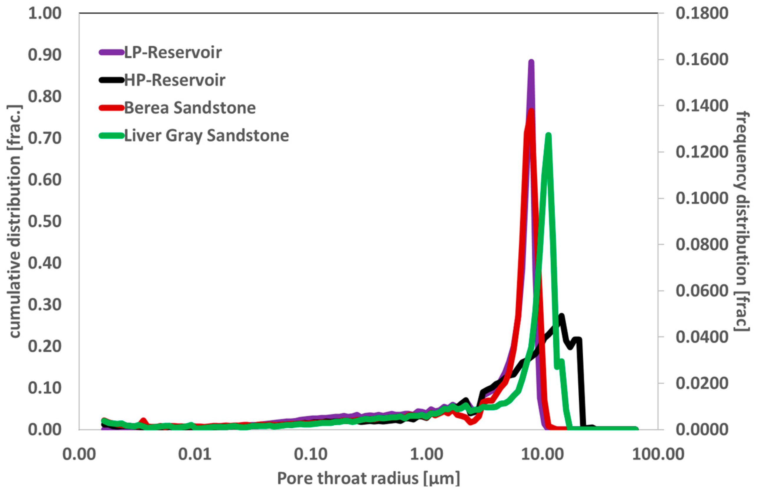 - Injectivity and Coreflood Performance: Liquid polymers LP1 and LP2 exhibited injectivity challenges in 60 mD and 300 mD Berea sandstone core plugs, with pressure stabilization not achieved at injection rates of 1–2.5 ft/day. In contrast, powder polymers demonstrated stable injectivity, with PP1 achieving consistent pressure behavior at 10 ft/day and exhibiting low resistance factor (RF = 50) and residual resistance factor (RRF = 15) in 300 mD cores. PP2 showed higher RF (89) and RRF (41), indicating greater retention and pressure drop.