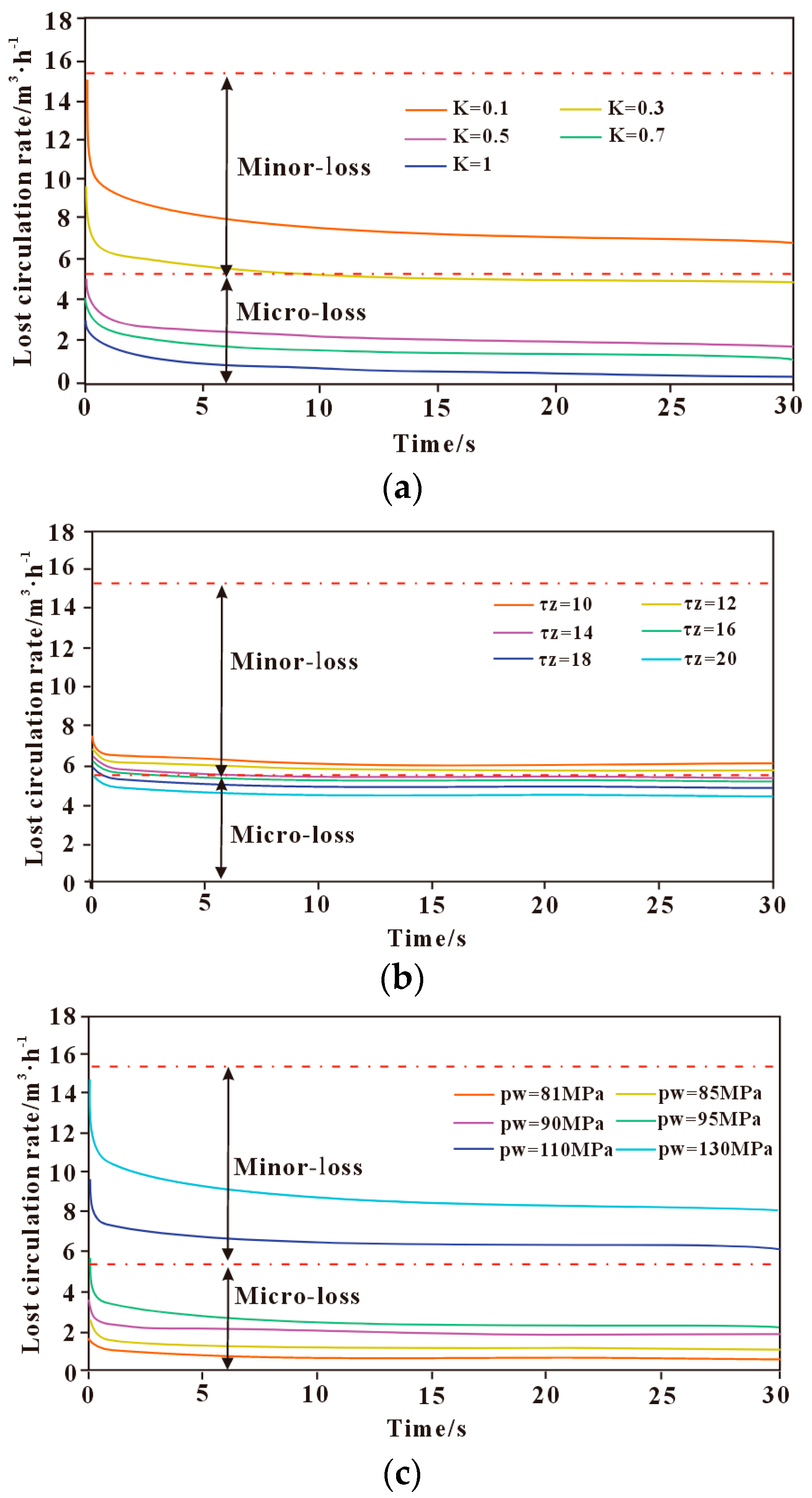 - Jia, L.; Chen, M.; Hou, B.; Sun, Z.; Jin, Y. Drilling fluid loss model and loss dynamic behavior in fractured formations. Pet. Explor. Dev. 2014, 41, 105–112. [Google Scholar] [CrossRef]