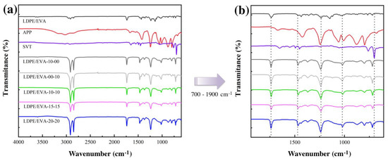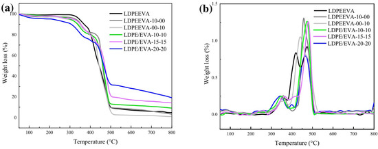 - Mosnácek, J.; Basfar, A.A.; Shukri, T.M.; Bahattab, M.A. Poly(Ethylene Vinyl Acetate) (EVA)/Low Density Polyethylene (LDPE)/Ammonium Polyphosphate (APP) Composites Cross-linked by Dicumyl Peroxide for Wire and Cable Applications. Polym. J. 2008, 40, 460–464. [Google Scholar] [CrossRef]