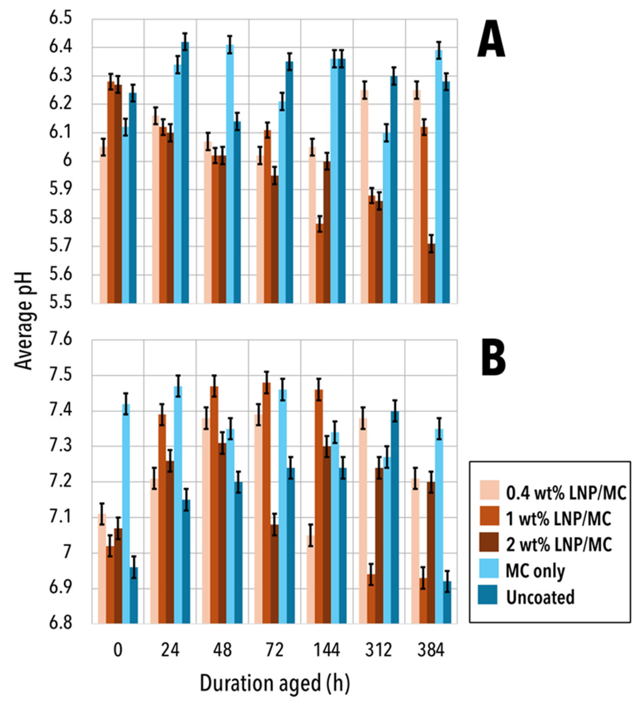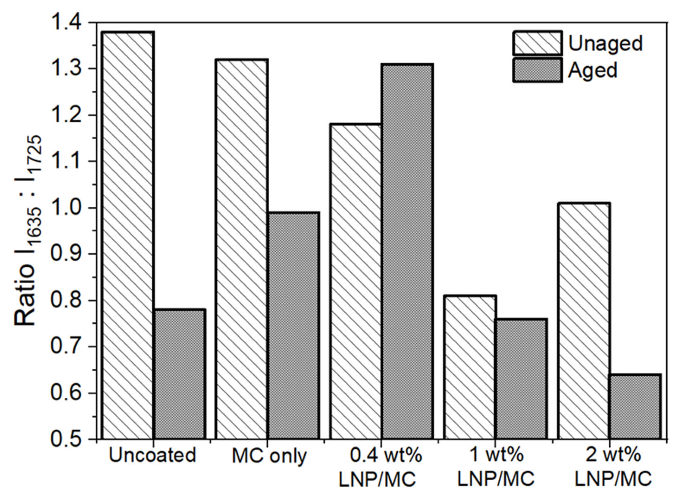 3.5.3. The Effect of the LNP/MC Coatings on Oxidation of the Substrates