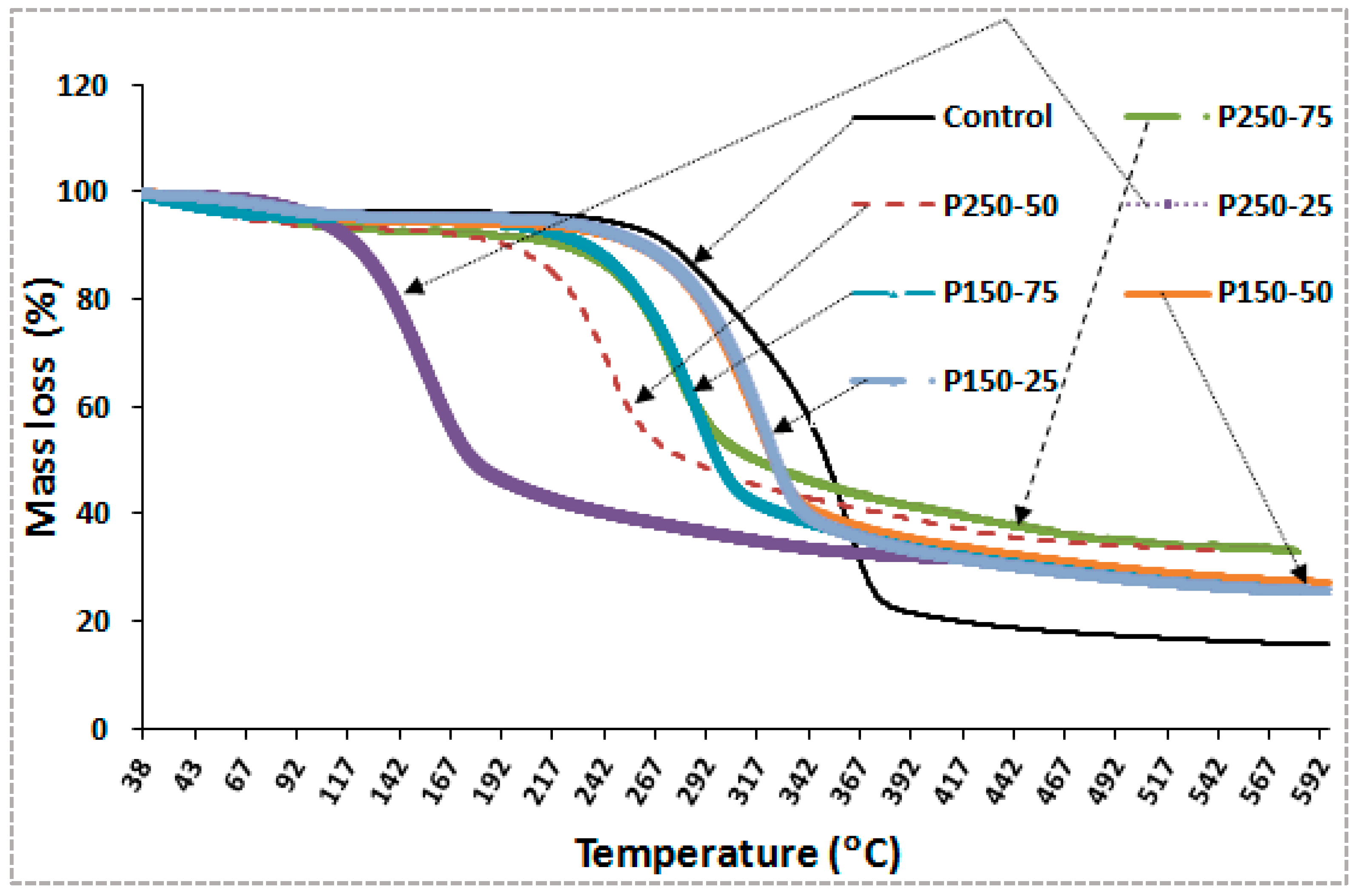 3.2.2. Mass Loss (ML): Tunnel and TGA Methods