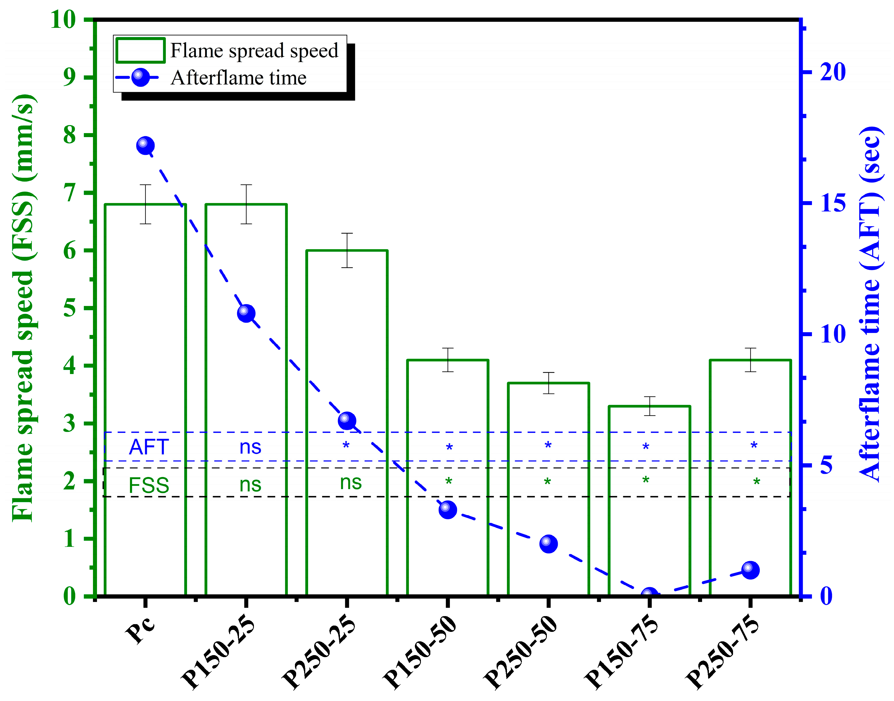 - Marino, S.; Gaff, M.; Sethy, A.K.; Kamboj, G.; Rezaei, F.; Kačík, F.; Hosseini, S.B.; Li, H.; Hui, D. Enhancing the Fire Resistance Properties of Thermally Modified Robinia Pseudoacacia Wood with Natural and Synthetic Flame Retardants: Chemical Characterisation and Fire Behaviour. Eur. J. Wood Prod. 2024, 82, 1145–1157. [Google Scholar] [CrossRef]