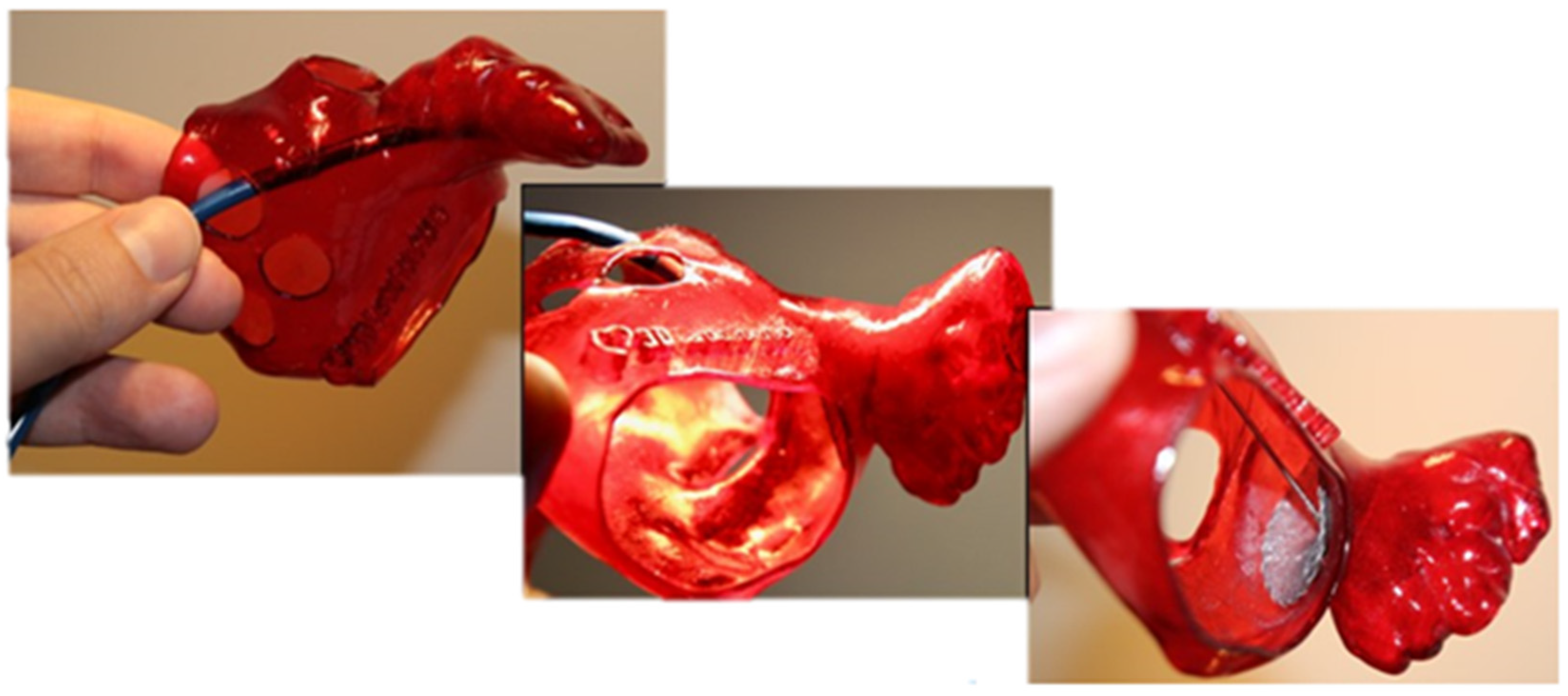 - Valvez, S.; Oliveira-Santos, M.; Piedade, A.P.; Gonçalves, L.; Amaro, A.M. Planning the Closure Procedure: Additive Manufacture of a Left Atrial Appendage. In Proceedings of the 10th Congress of the Portuguese Society of Biomechanics; Martins Amaro, A., Roseiro, L., Messias, A.L., Gomes, B., Almeida, H., António Castro, M., Neto, M.A., de Fátima Paulino, M., Maranha, V., Eds.; Lecture Notes in Bioengineering; Springer Nature: Cham, Switzerland, 2023; pp. 89–95. [Google Scholar]