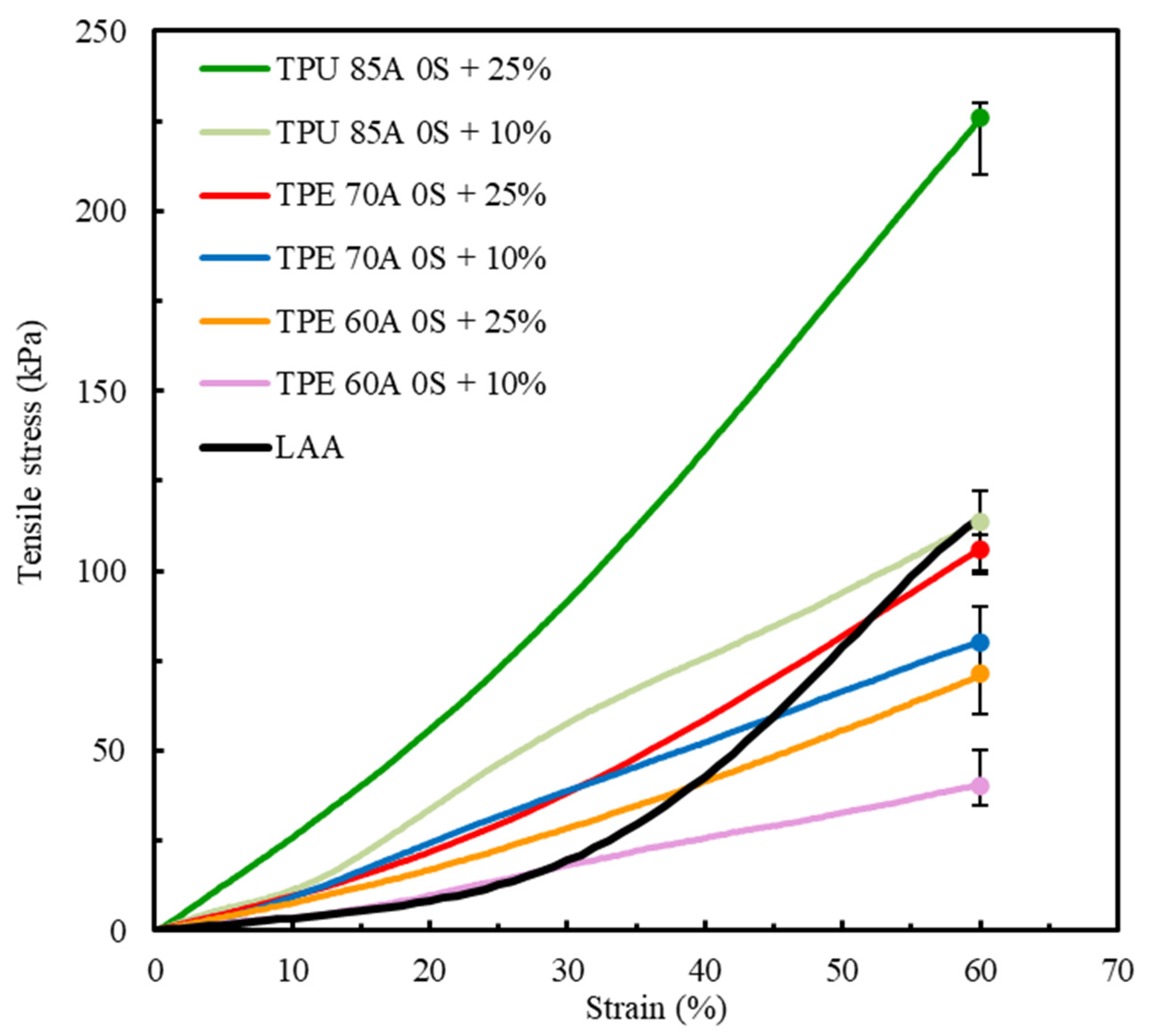 | TPU 85A | 2.6 ± 0.8 | 113.9 ± 5.8 |