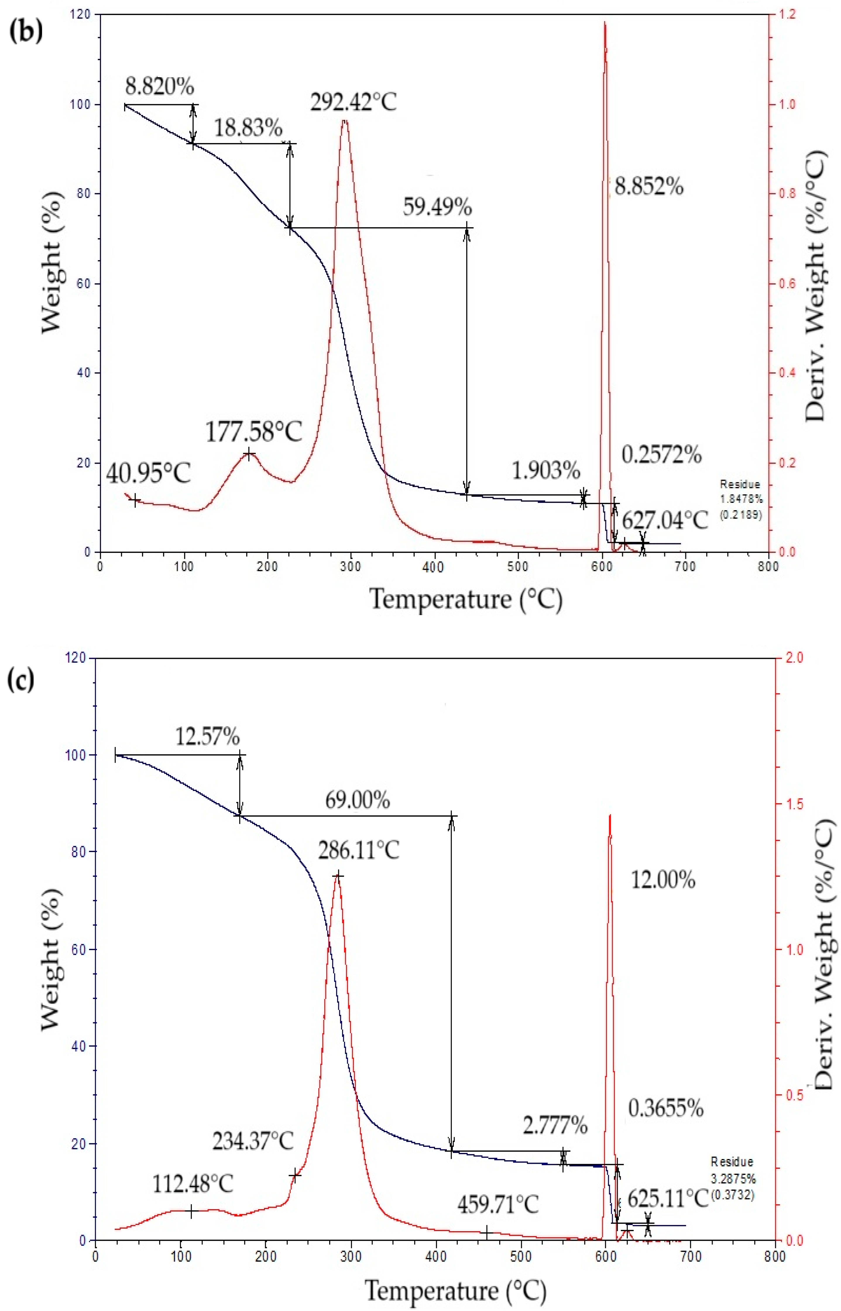 3.4.1. Thermogravimetric Analysis of Bioplastic Films