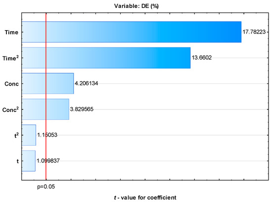 Pareto chart for standardized effects for DE calculated by RSM.
