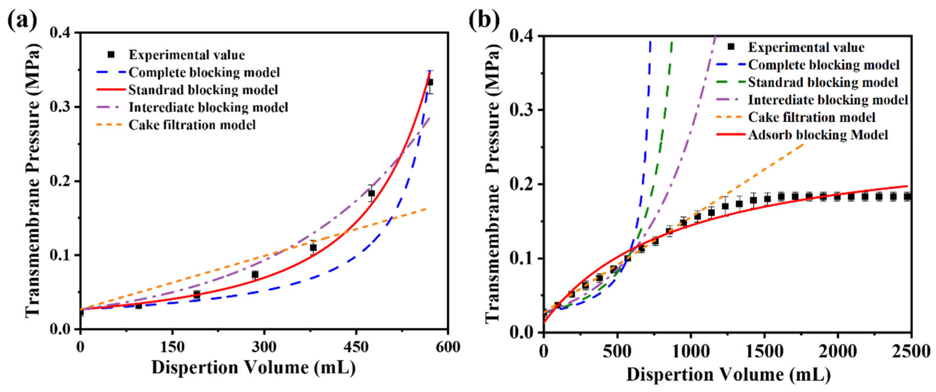 3.5. Membrane Blockage Mechanism in the Filtration Process
