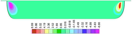 These elliptic partial differential equations for the pressure gradients are often referred to as Poisson’s equation. The first analysis of transverse flow in single-screw extruders was published by Mohr et al. [4] for a channel with infinite width (). In this case, the term in Equation (4) is set to zero (). The tangential velocity for zero leakage flow can be written as