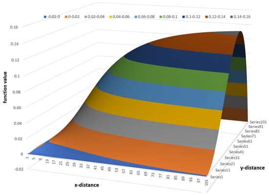 The flow rate as a function of and can now be calculated. Figure 23 shows a 3D surface plot of the flow rate viewed from the lower right corner of the channel.