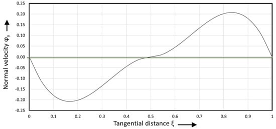Similarly, the normal velocity is found by taking the first derivative of the stream function with respect to tangential coordinate x.